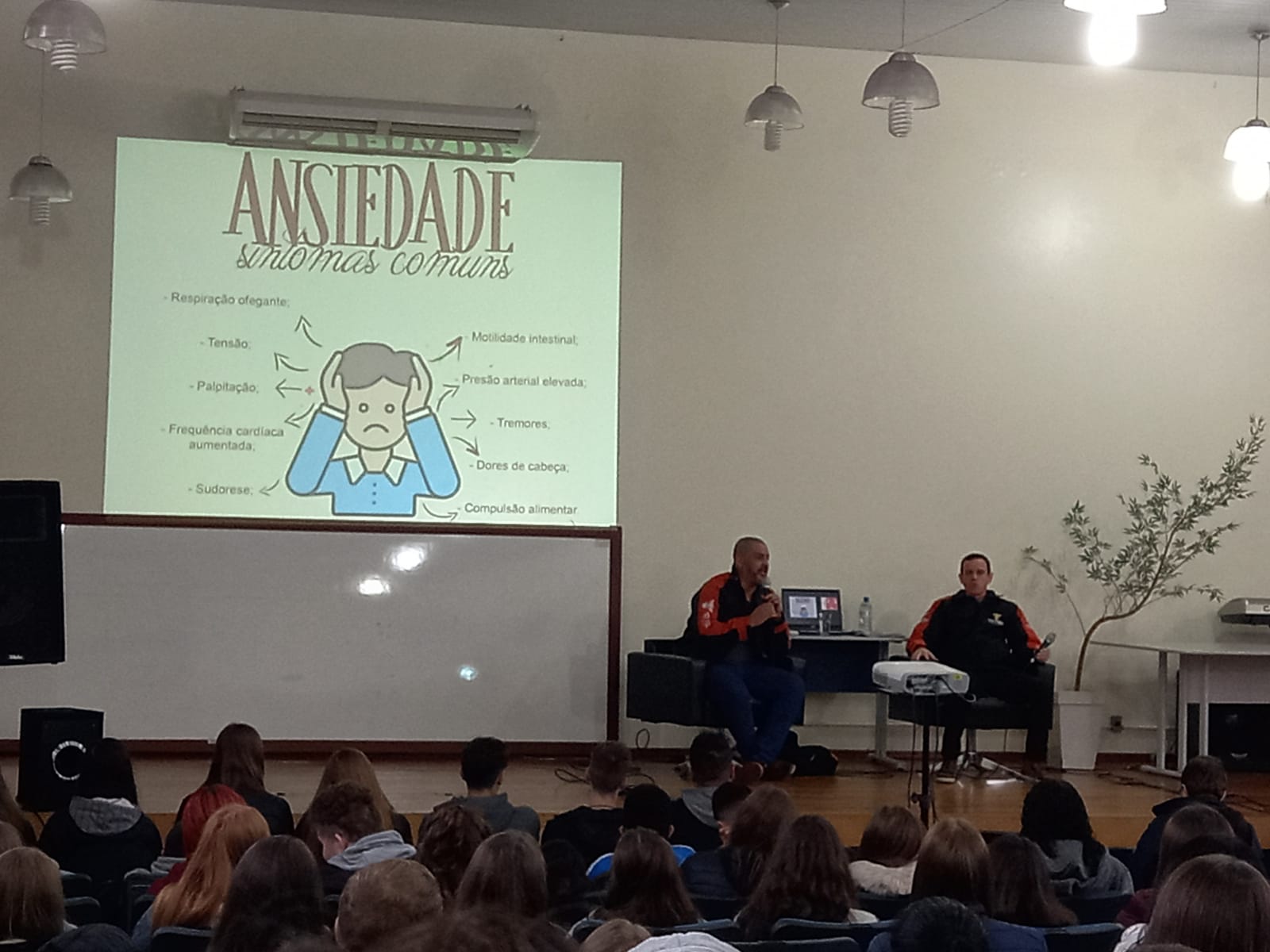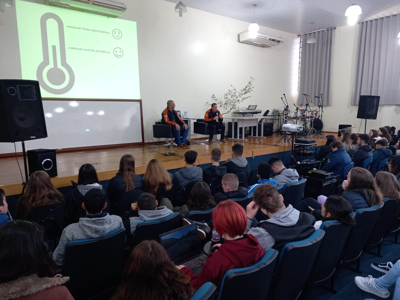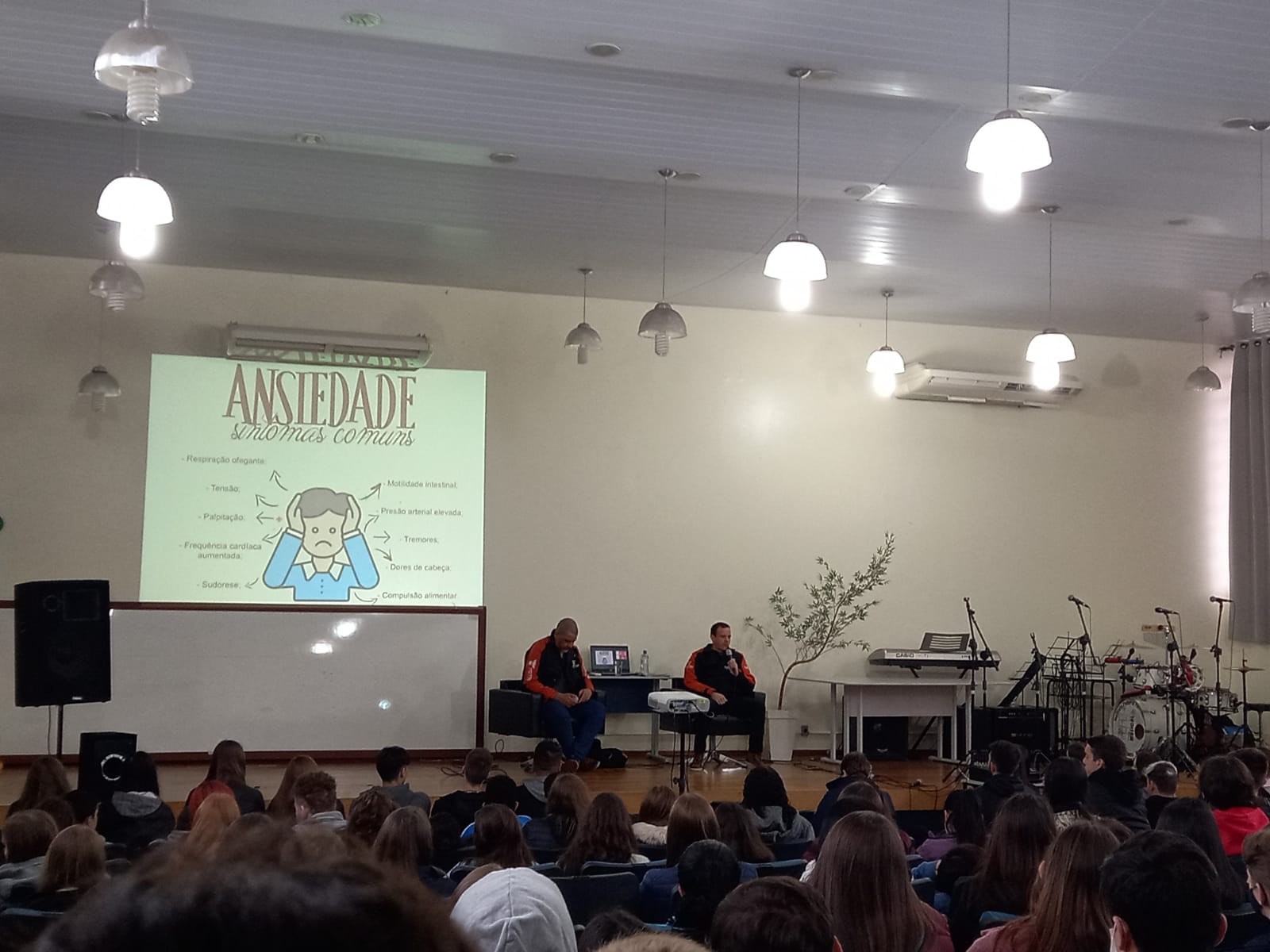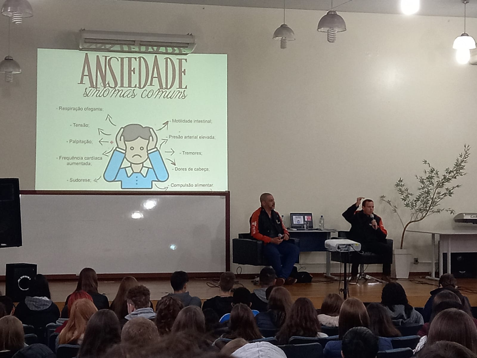 Os palestrantes realizaram uma conversa com os estudantes, falando sobre os problemas enfrentados na vida de estudante, como: ansiedade, nervosismo, motivação, organização nos estudos, como se preparar para as avaliações, técnicas para se acalmar na hora das avaliações, possibilidade das profissões, Enem e vestibulares. Também apresentaram técnicas e dicas de como controlar crises de ansiedade e trouxeram indicações de sites onde os adolescentes podem buscar ajuda através do trabalho de profissionais, dispostos a ouvi-los em momentos de crise.