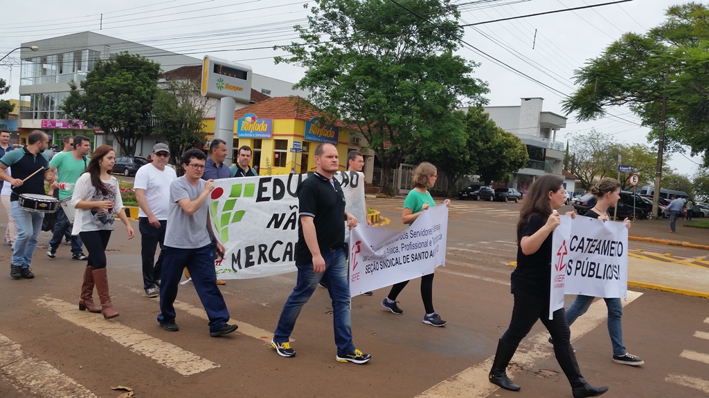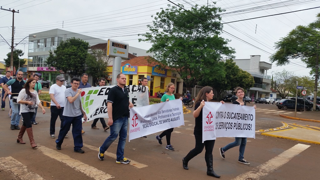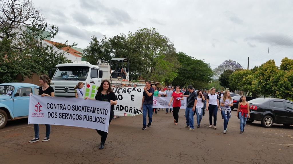 Durante a tarde, com o apoio de servidores da Escola Estadual de Ensino Médio Santo Augusto – Ginásio, foi realizada uma caminhada pela Avenida do Comércio e em seguida foi feita uma concentração na Praça Pompílio Silva.