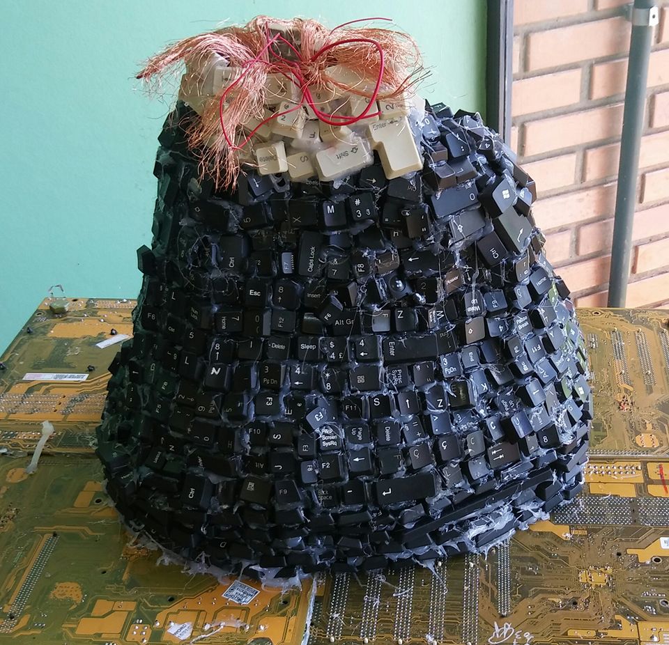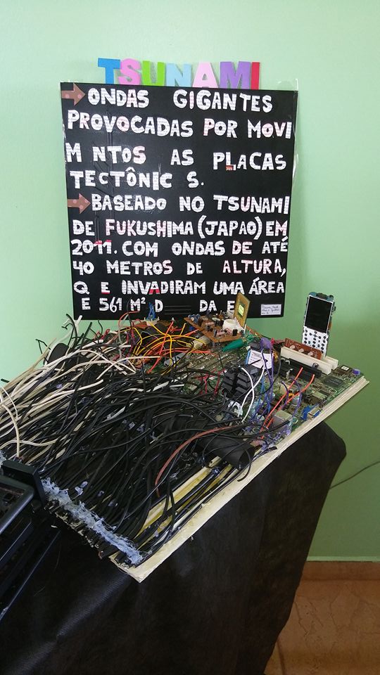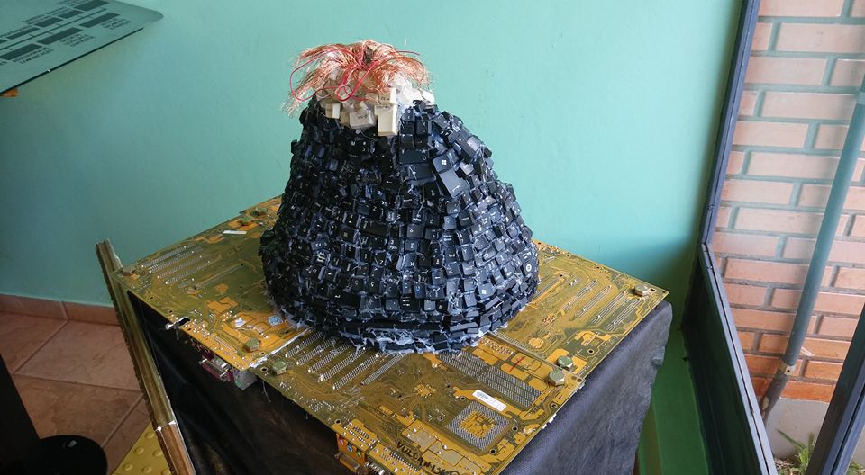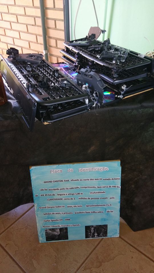 Lixo eletrônico utilizado como matéria prima em trabalhos de arte e geografia