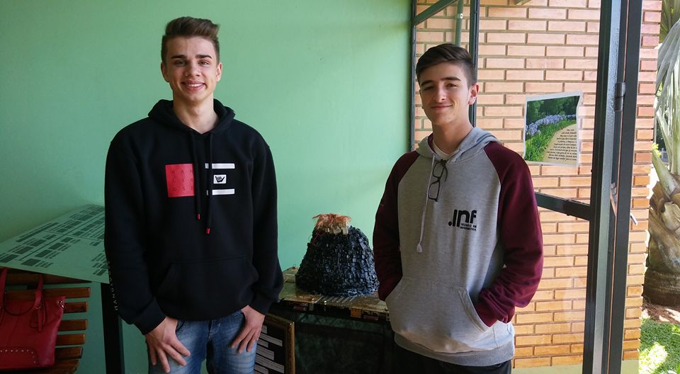 As professoras de artes e geografia do IFFar-Campus Santo Augusto, Janaina Feller e Cláudia dos Santos realizaram um trabalho interdisciplinar na turma do 1º ano do técnico em informática, em que fenômenos da natureza são representados a partir do lixo eletrônico.
