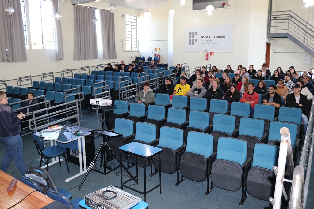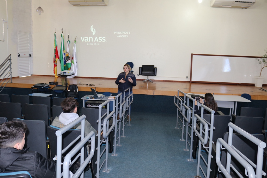 Na tarde de quinta-feira, 11 de agosto, os estudantes do 2º e 3º ano do curso técnico em Agropecuária integrado ao ensino médio do IFFar – Campus Santo Augusto assistiram uma palestra com a Coordenadora de Recursos Humanos da Sementes Vanass, Fabiane Trentini e com a Assistente de RH, Shaiana Harter, as quais vieram falar sobre a empresa e as oportunidades de estágio.