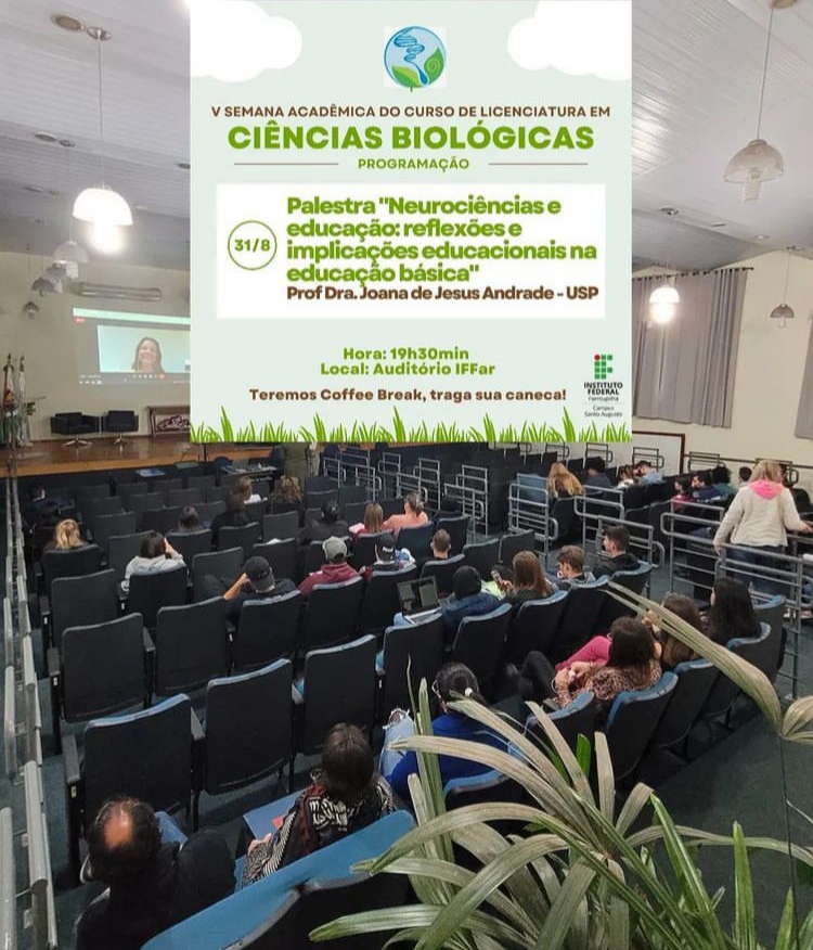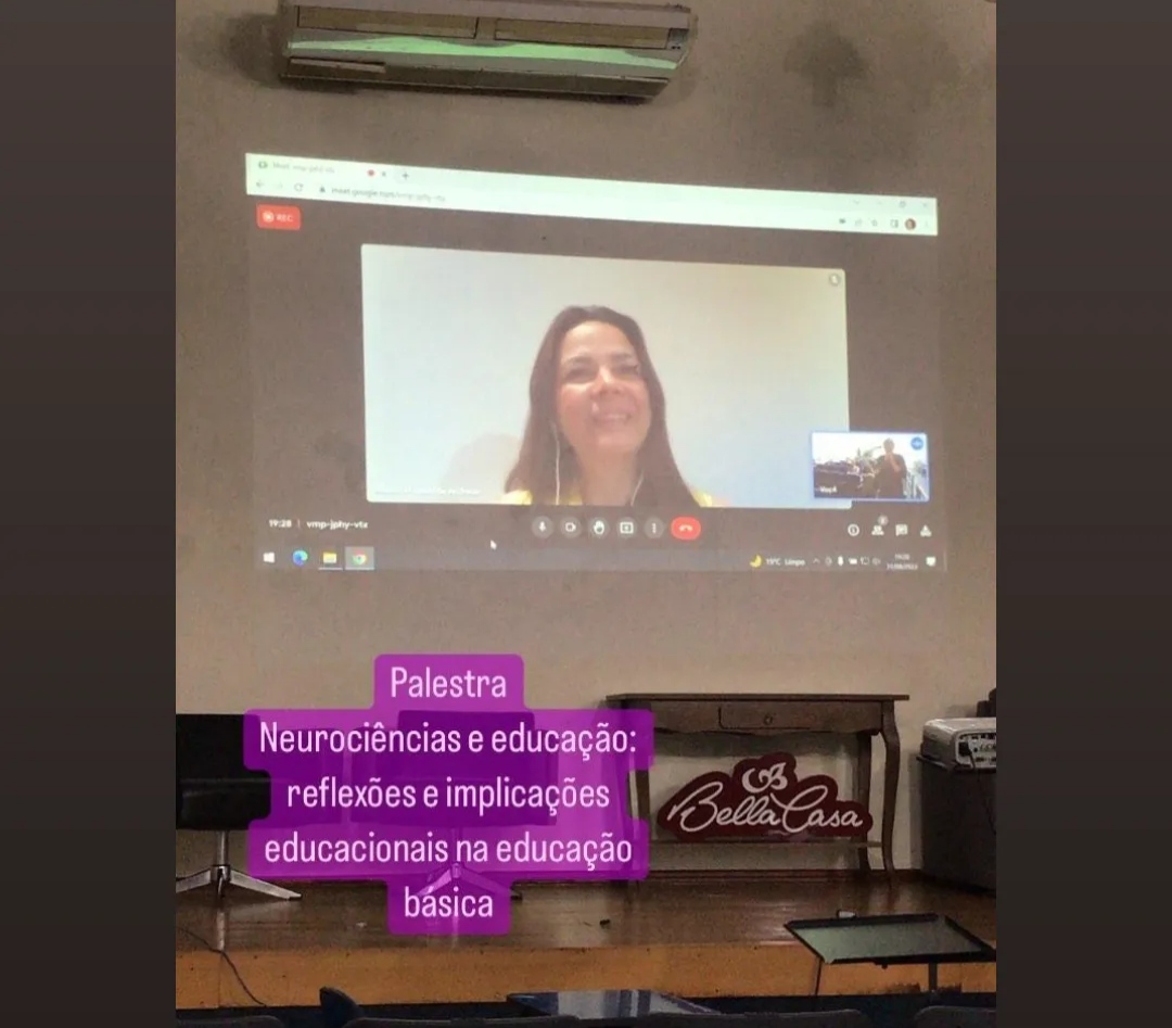 Na quarta-feira, dia 31, às 19h30, no auditório, houve a palestra sobre “Neurociências e educação: reflexões e implicações educacionais na educação básica”, ministrada online pela professora da USP, Drª. Joana de Jesus Andrade.