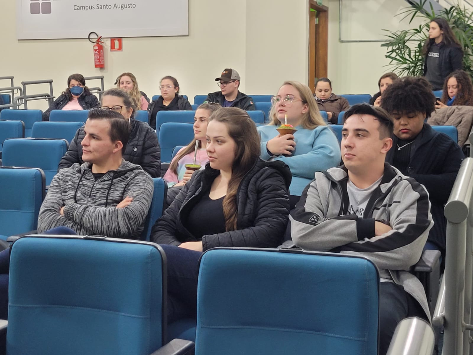 Na quinta-feira, 1º de setembro, às 19h30, aconteceu a Mostra de Trabalhos dos alunos do curso, com o tema “Fazendo Ciência”, realizada no prédio de Ciência e Tecnologia. A atividade organizada pelos professores Gustavo Marques da Costa e Juliani Natália dos Santos, contou com a colaboração de estudantes. Na ocasião, além de alunos dos cursos superiores da instituição, alunos do noturno da Escola Estadual de Ensino Médio Santo Augusto e da EJA da Escola Estadual de Ensino Fundamental Francisco Andrighetto prestigiaram os trabalhos apresentados.