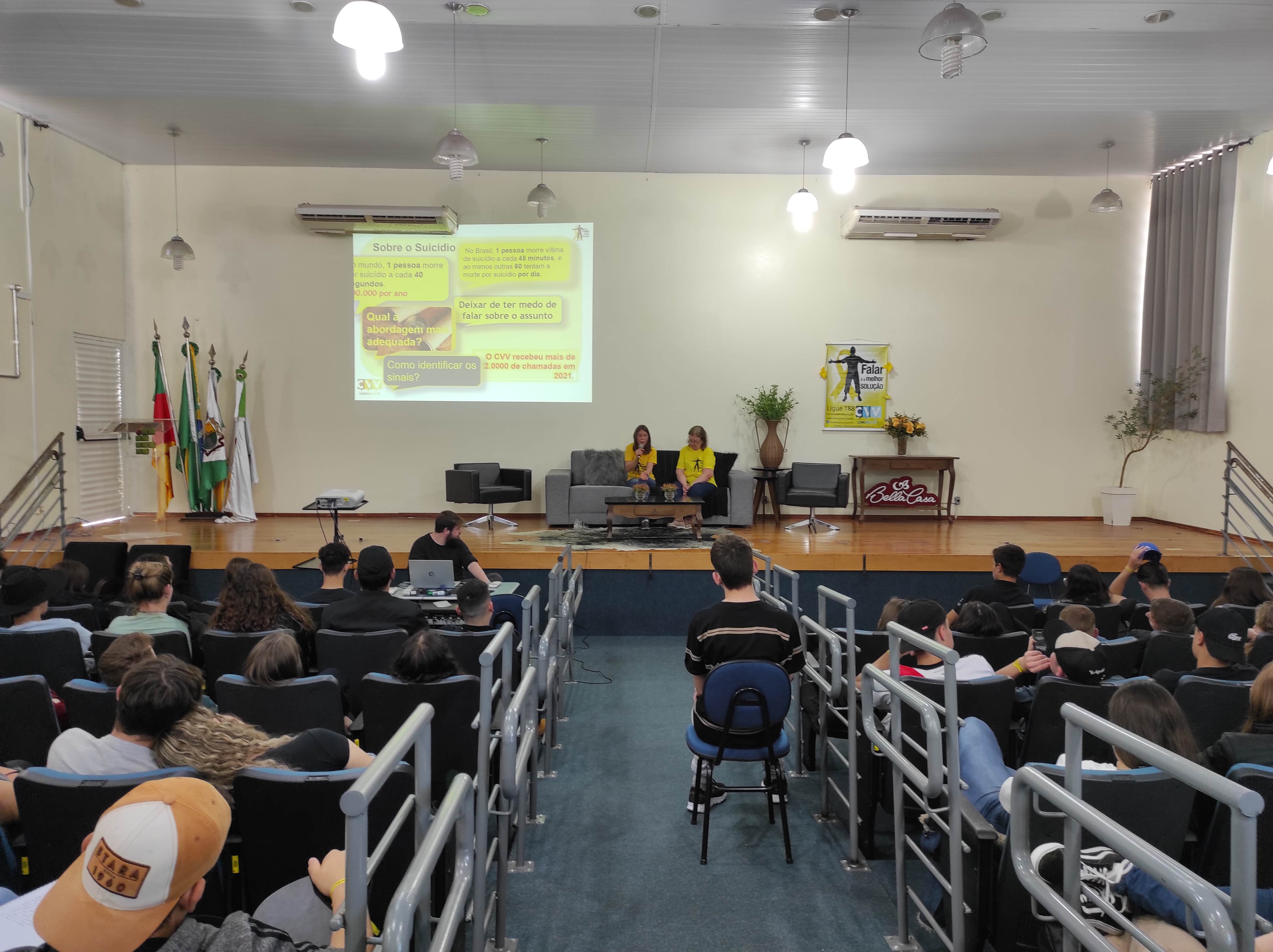 O IFFar - Campus Santo Augusto recebeu na tarde desta terça-feira, dia 13, as voluntárias do Centro de Valorização da Vida de Três de Maio – CVV, Flávia Hamerski e Cláudia Regina Demo, que palestraram para os estudantes dos cursos técnicos integrados ao ensino médio.