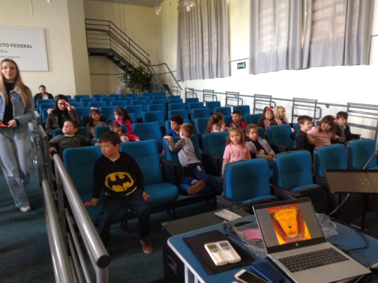 As crianças foram recebidas no auditório da instituição pelo coordenador do projeto no campus, professor Edevandro Sabino da Silva e pelas bolsistas, Allana Gehm, Eduarda Stroeher Schons, Júlia Luisa Morgesntern, Luana Benites, Maria Eduarda Trindade e Sabrina Caetano.