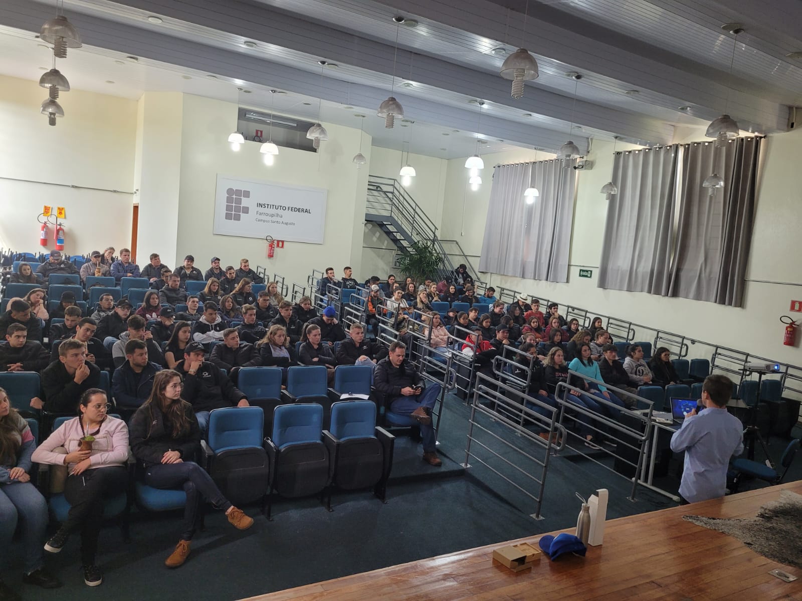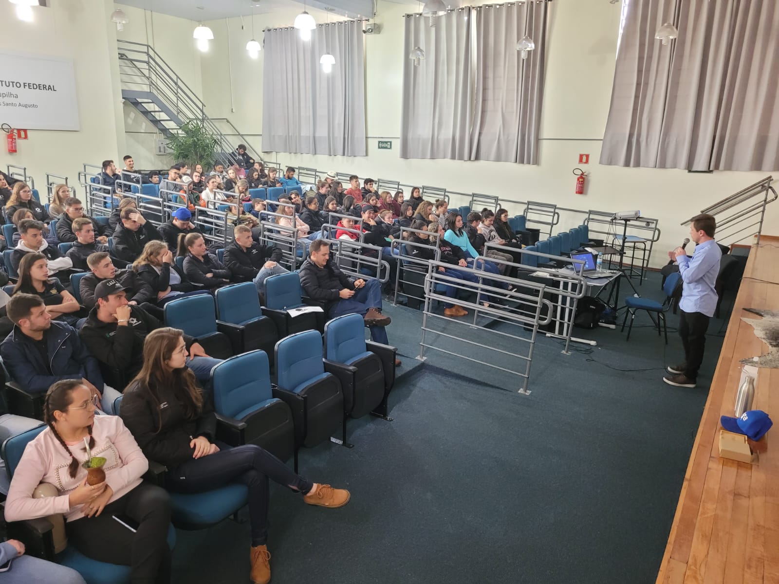 Na tarde desta quinta-feira, 15 de setembro, os estudantes do 8º semestre do curso de Bacharelado em Agronomia e do 2° e 3° ano do curso Técnico em Agropecuária, participaram de uma palestra com o representante da empresa Irriga Global, o Agrônomo Guilherme Masarro Araujo, com o tema “Manejo da Irrigação”. A atividade foi organizada pela professora Cristine da Fonseca, responsável pela disciplina de Irrigação e Drenagem.
