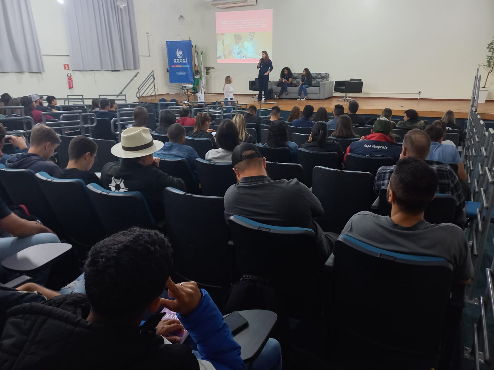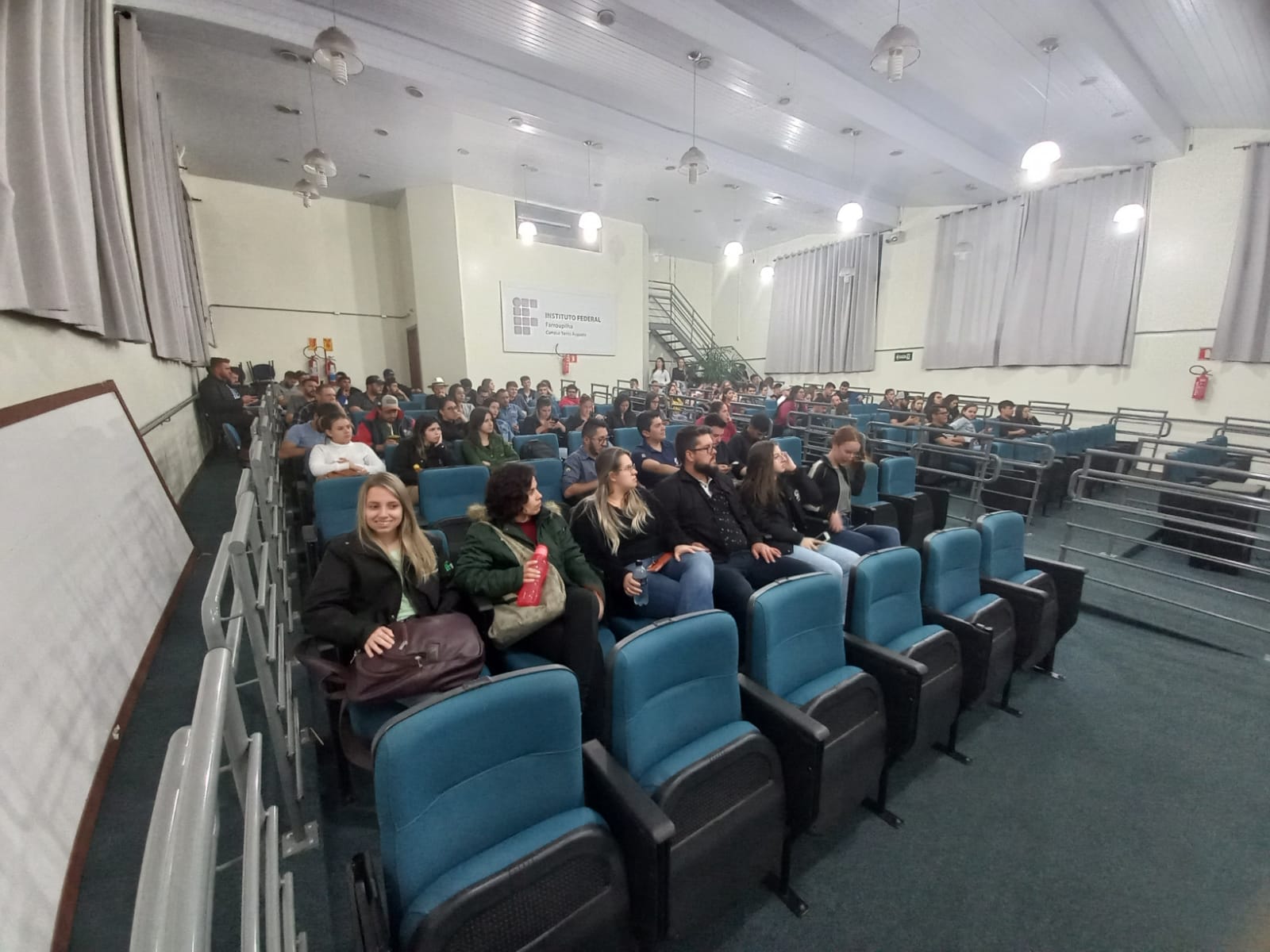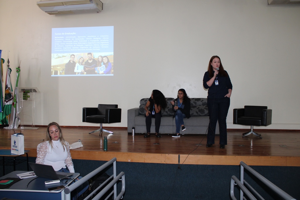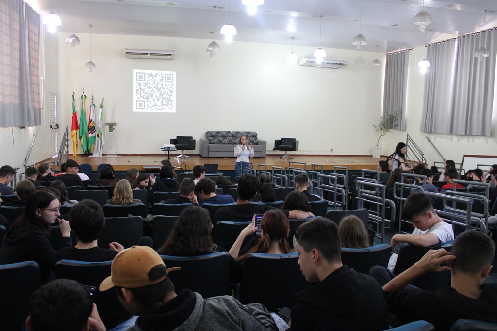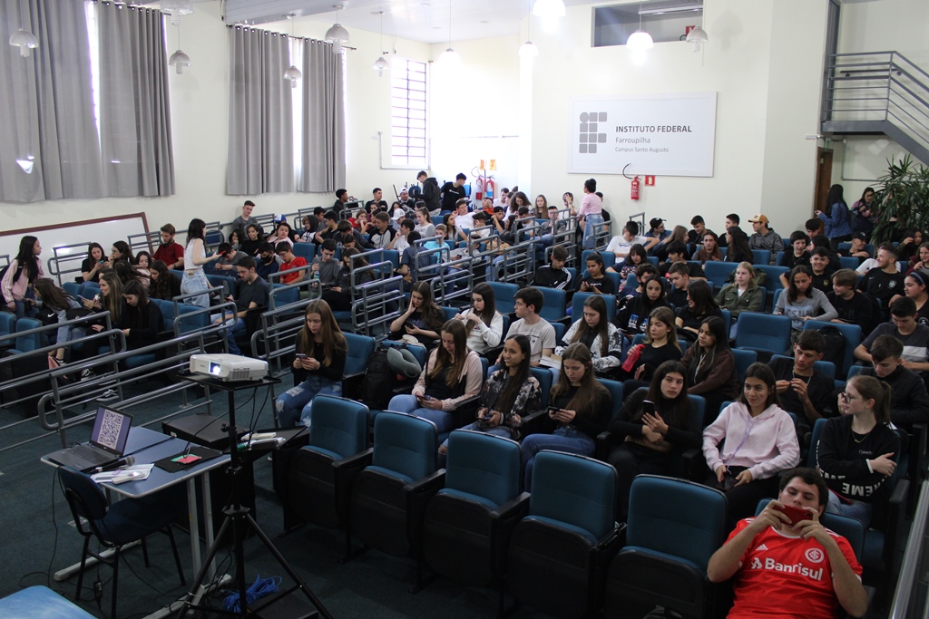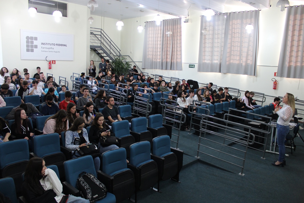 Na tarde de ontem, 26 de setembro, estudantes dos cursos técnicos integrados ao ensino médio do IFFar – Campus Santo Augusto, participaram no auditório da instituição, de uma Roda de Conversa com as professoras dos Estados Unidos, Nicole Bedoya e Krista Naomi Abrellano. À noite, foi a vez dos estudantes dos cursos superiores conversarem com as intercambistas, sobre suas experiências.
