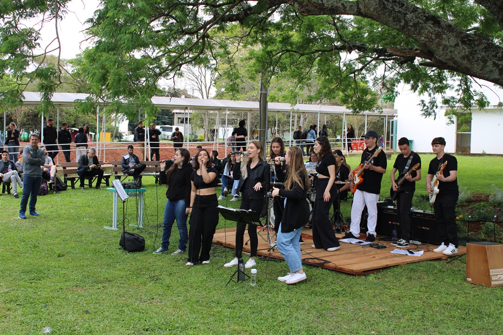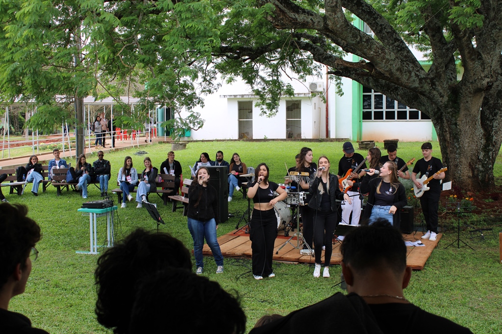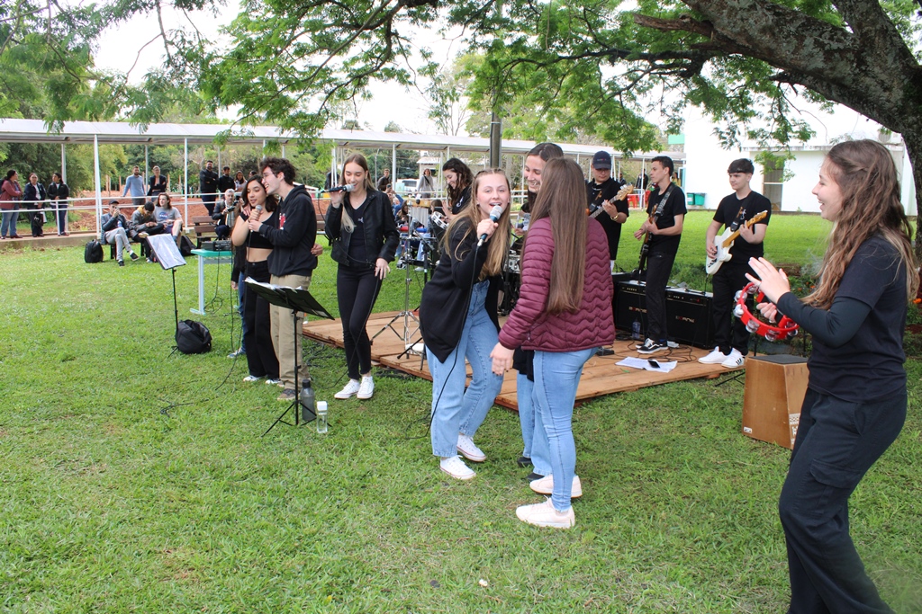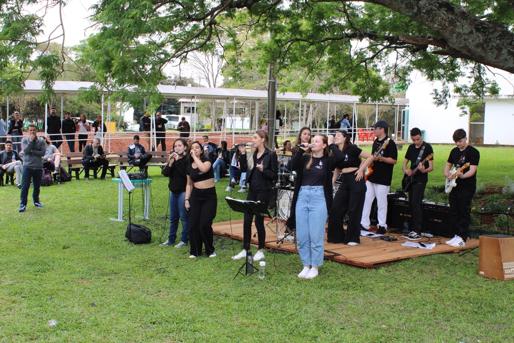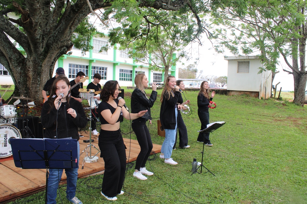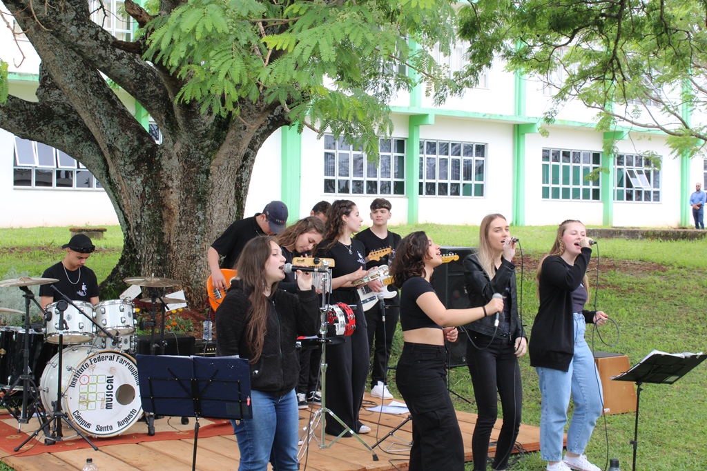 A Banda IF Musical do Campus Santo Augusto foi uma das atrações artísticas do evento, se apresentando no gramado do Campus Santo Ângelo durante o intervalo do almoço, garantindo momentos de alegria e descontração para estudantes e servidores que participaram da Mept.