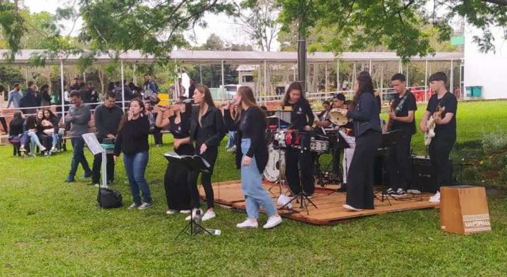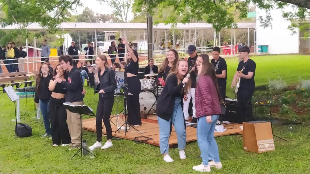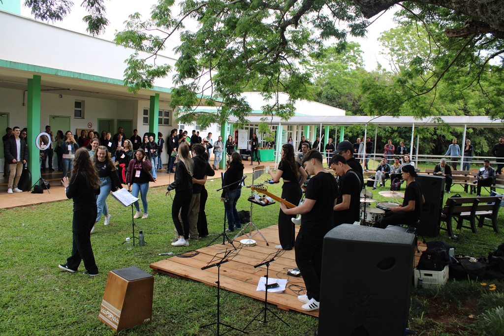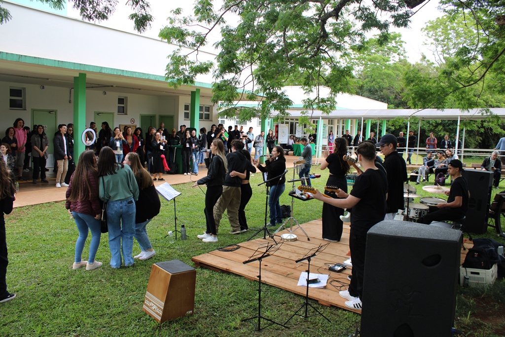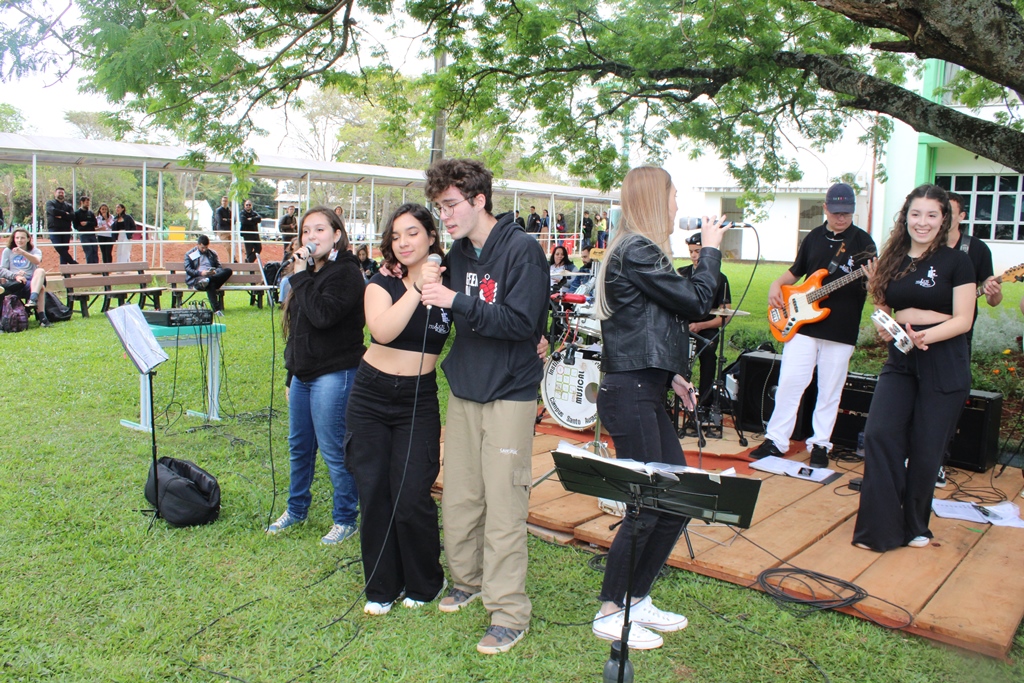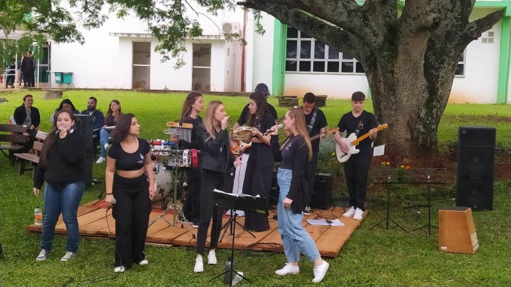 A Banda IF Musical do Campus Santo Augusto foi uma das atrações artísticas do evento, se apresentando no gramado do Campus Santo Ângelo durante o intervalo do almoço, garantindo momentos de alegria e descontração para estudantes e servidores que participaram da Mept.