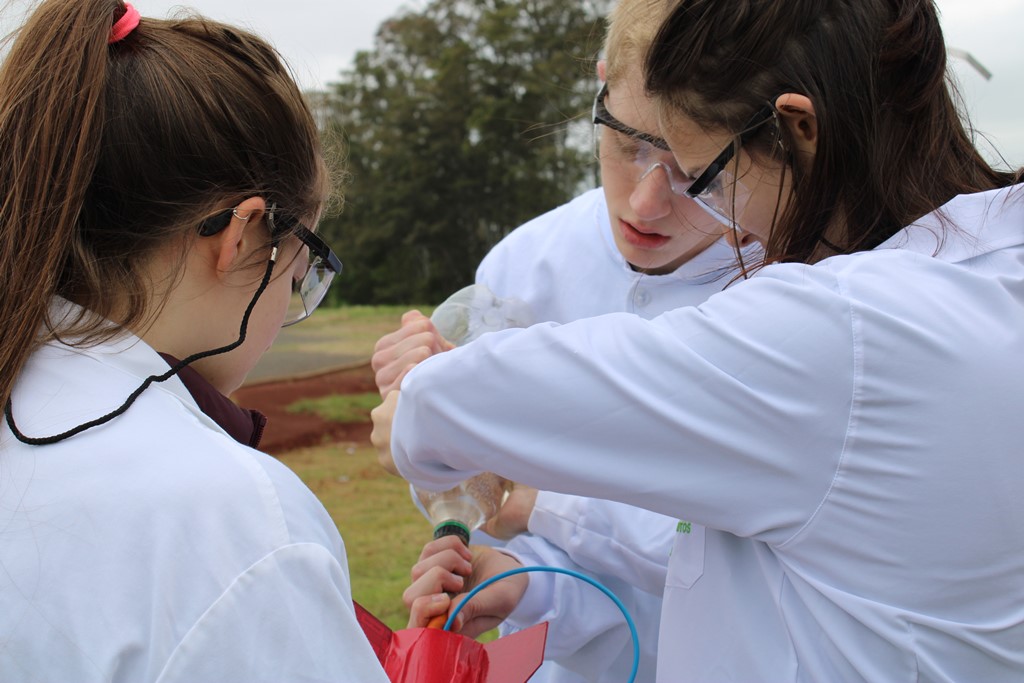 Mostra de Foguetes - estudantes Arthur Morgenstern Hagemann, Indyara de Lima Farezin