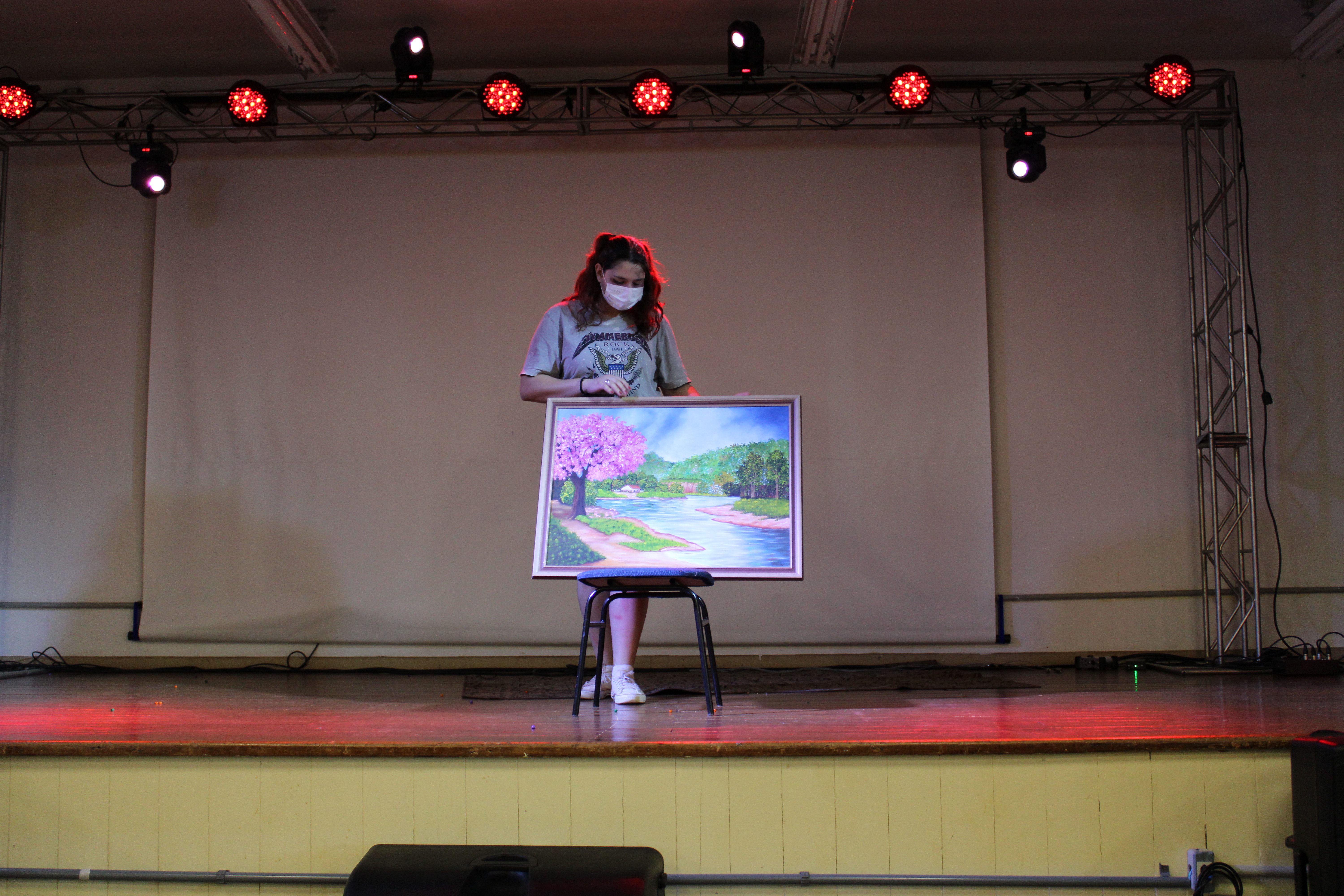 *Categoria Performance Autoral - Mélany La Roque Wollmann (1º ano do técnico em Administração) apresentou o texto “Apenas mais uma História”, produzido sob a orientação do professor Edevandro Sabino da Silva;
