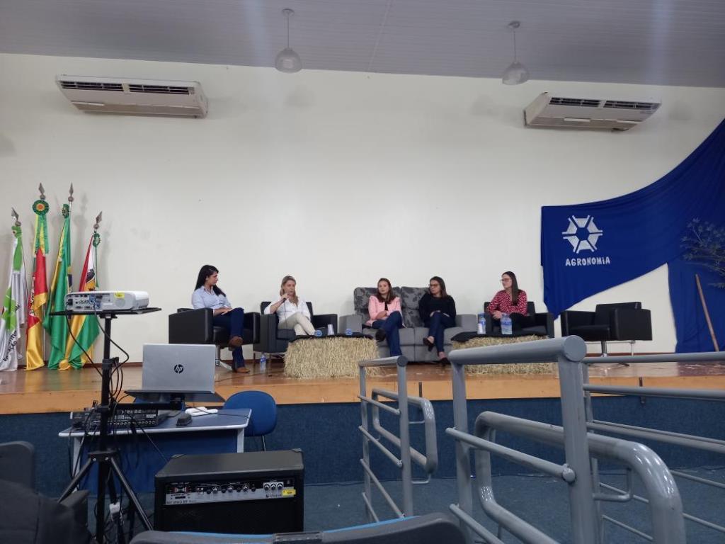 No dia 22, o Engenheiro Agrônomo da Emater, Carlos Alberto Weiller, falou sobre Unidades de Armazenamento. Na sequência, houve uma roda de conversa com o tema Mulheres no Agronegócio, com as seguintes representantes do setor: Drª. Camila Coelho Becker, Engenheira Agrônoma representante técnica comercial da FMC em Bagé; Marieli Milczarek, Engenheira Agrônoma RTC da Simbiose/Bioma; Scheila Bones, Engenheira Agrônoma da Empresa Zalamena e Cia Ltda; e as professoras do IFFar – Campus Santo Augusto, Drª Eliane Aparecida Rotili e Drª Lidiane Cristine Walter.