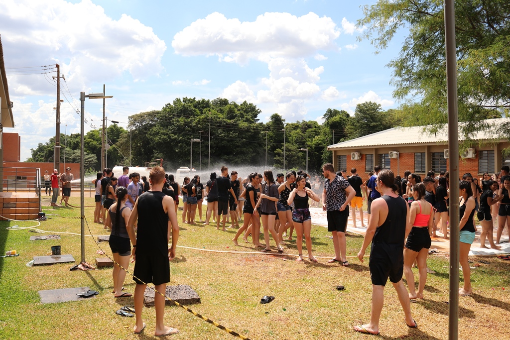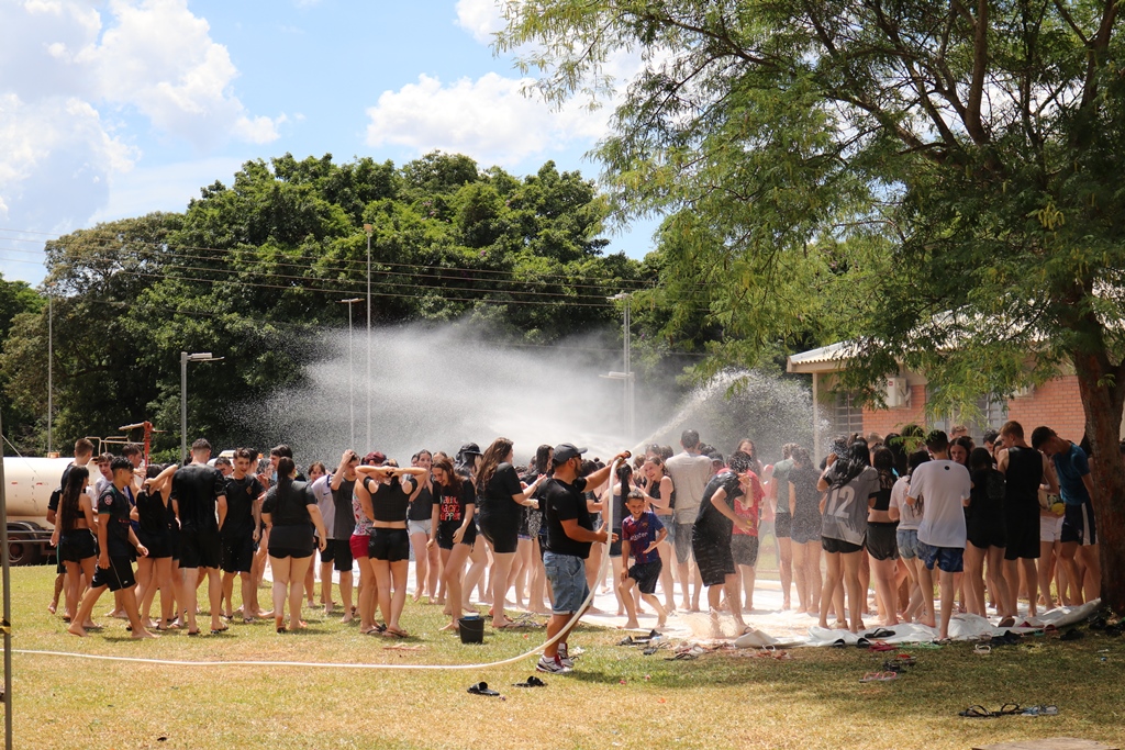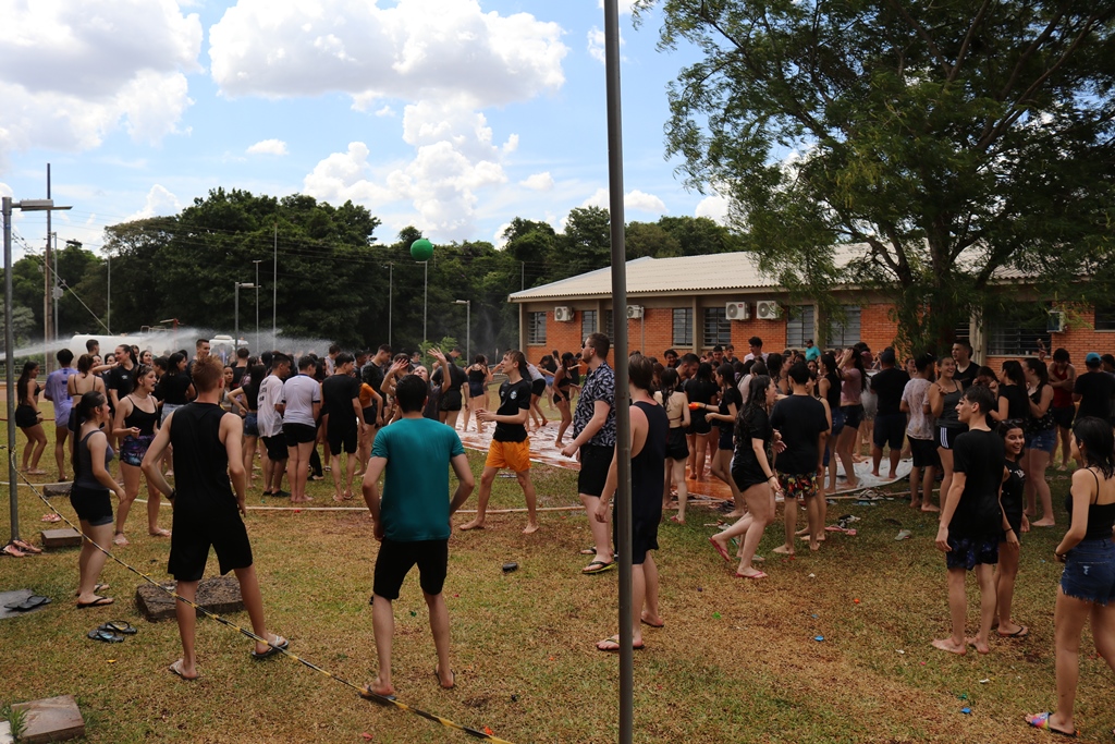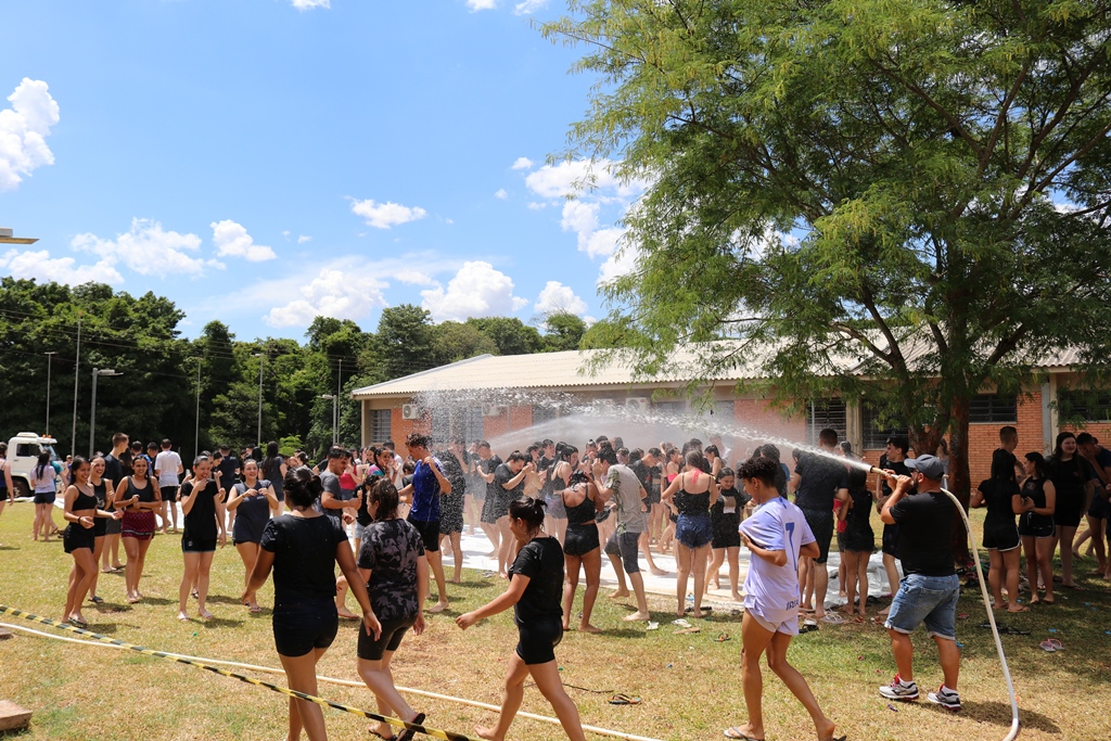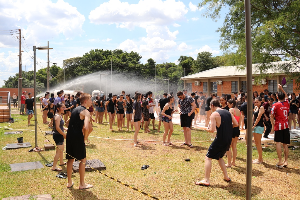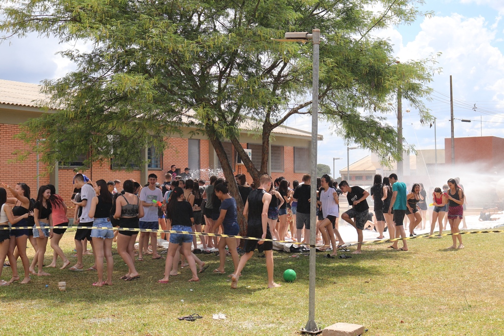 A brincadeira teve como espaço delimitado o gramado central do campus. Além de bexiguinhas com água, garrafas, baldes e mangueiras, também foram utilizados para molhar aqueles que desejavam participar da festa, mas a atração principal foi o jato de água do caminhão pipa da prefeitura, que abrilhantou a festa.