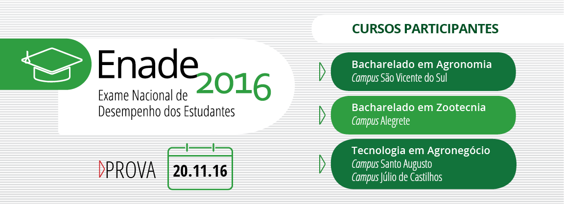 O Curso Superior de Tecnologia em Agronegócio, do IF Farroupilha - Campus Santo Augusto, foi avaliado esse ano pelo Exame Nacional de Desempenho de Estudantes (ENADE). A prova foi aplicada no campus, no dia 20 de novembro, das 13h às 17h.