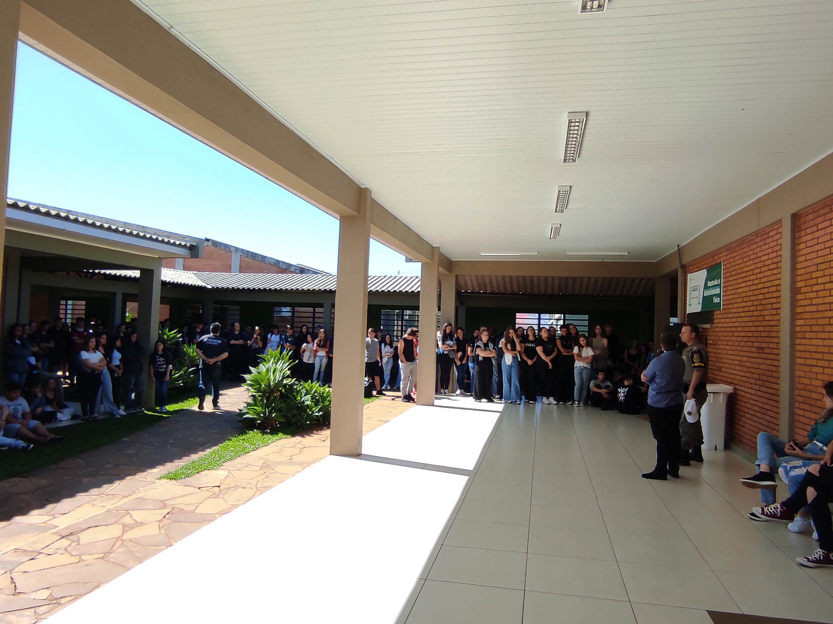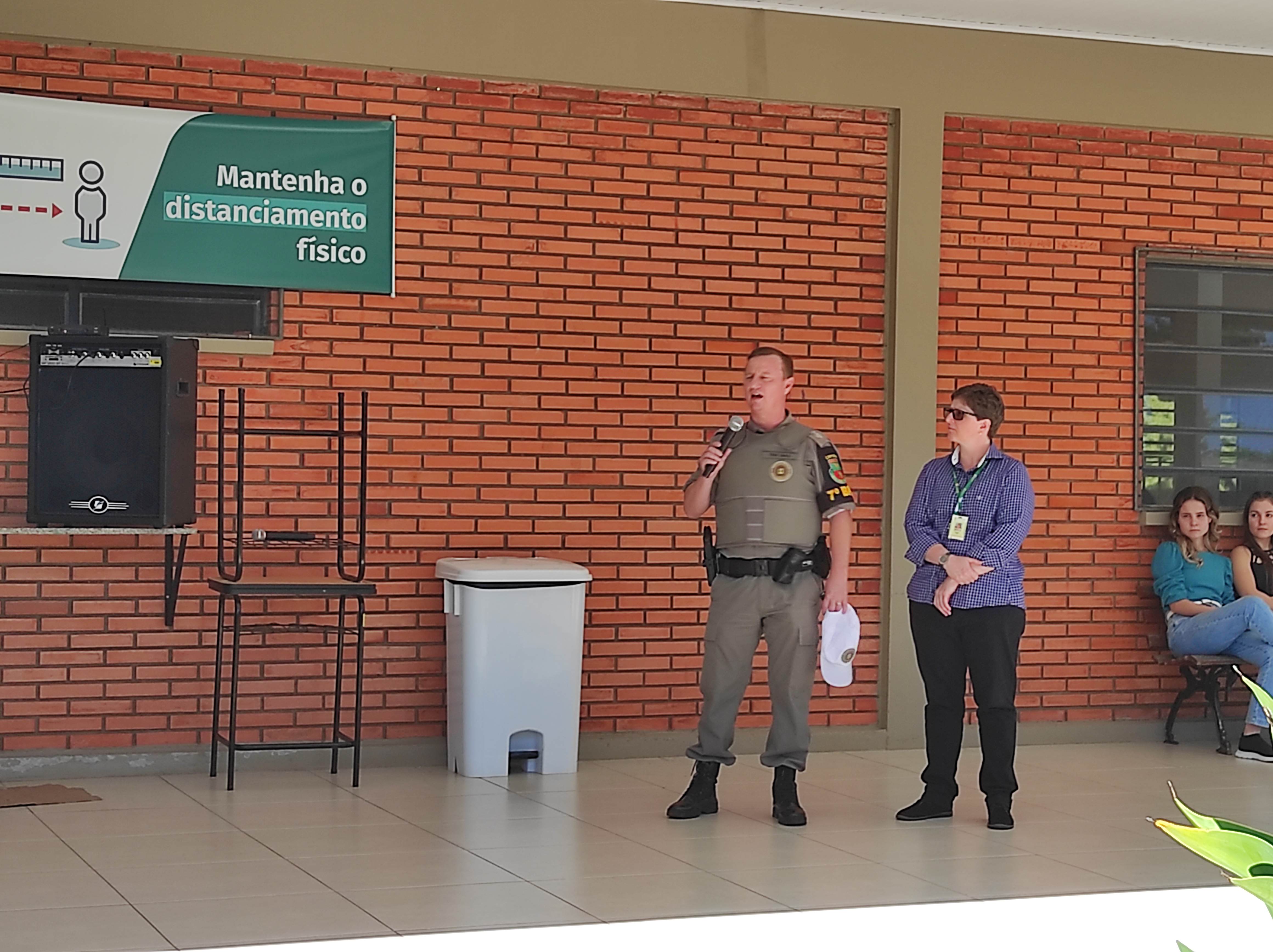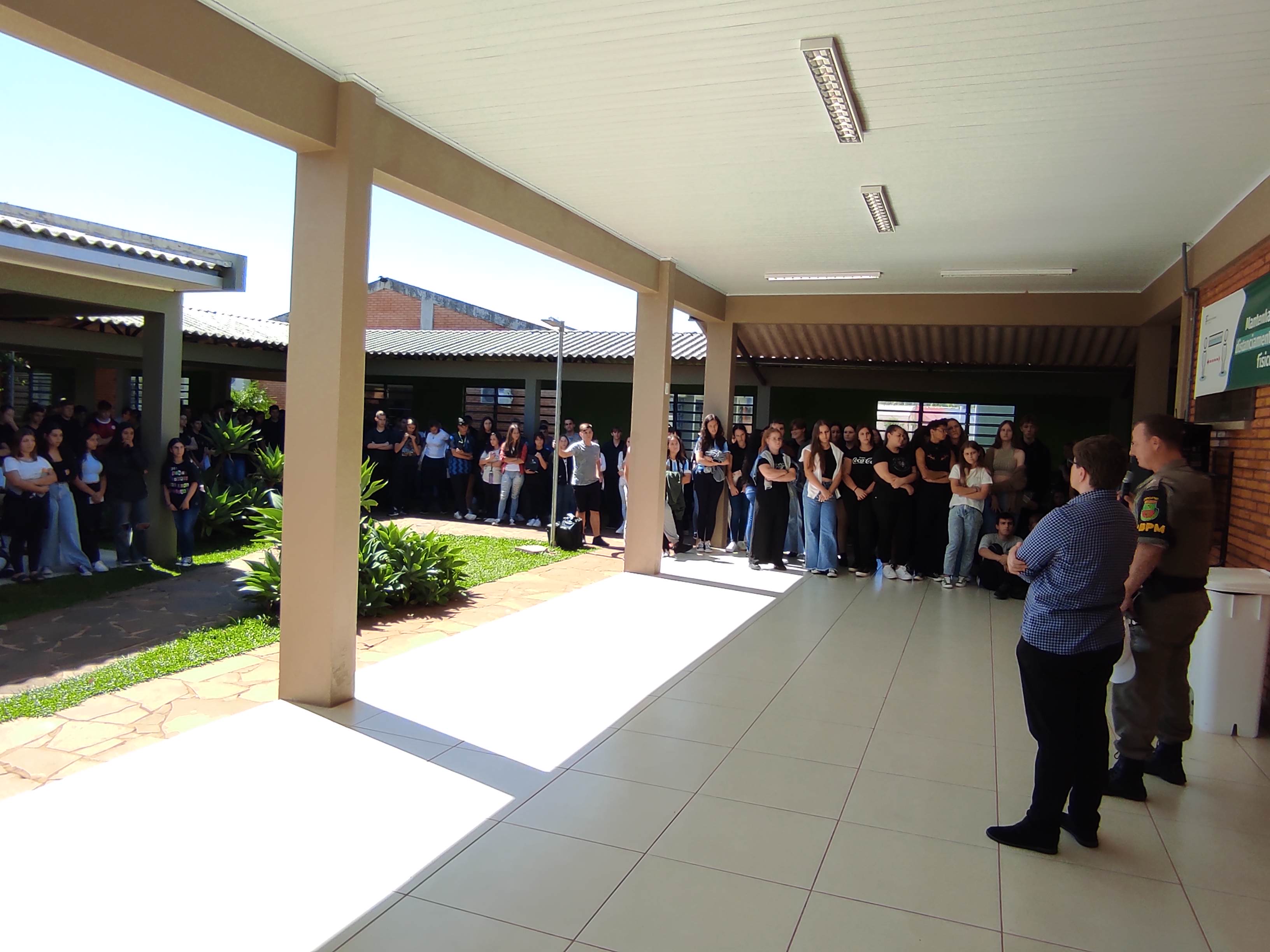 Ainda na terça-feira, o Tenente Dias e o Soldado Albuquerque vieram até o Campus para conversar com os estudantes sobre os protocolos da Brigada Militar e ações que já estão sendo realizadas nas escolas de Santo Augusto, salientando que não há nada concreto quanto a possíveis ataques às escolas locais. Destacando ainda, que a Brigada Militar está atenta e qualquer denúncia deve ser feita diretamente nos canais oficiais da Polícia .