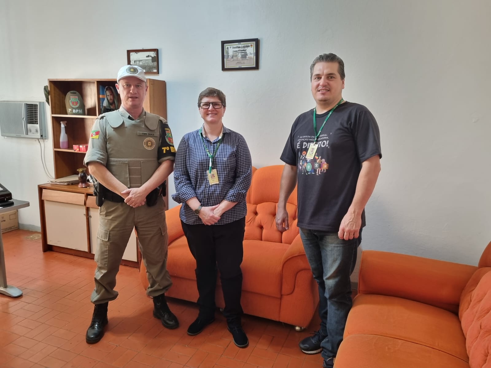 Na manhã desta terça-feira, 11 de abril, a Diretora Geral do IFFar - Campus Santo Augusto, Márcia Fink, juntamente com o Coordenador da Assistência Estudantil, Marcos César Wollmann Santos, estiveram reunidos com o Tenente Dias, do Batalhão da Brigada Militar de Santo Augusto, com o objetivo de alinhar ações em conjunto para garantir a segurança dos estudantes e comunidade acadêmica, durante sua permanência na instituição.