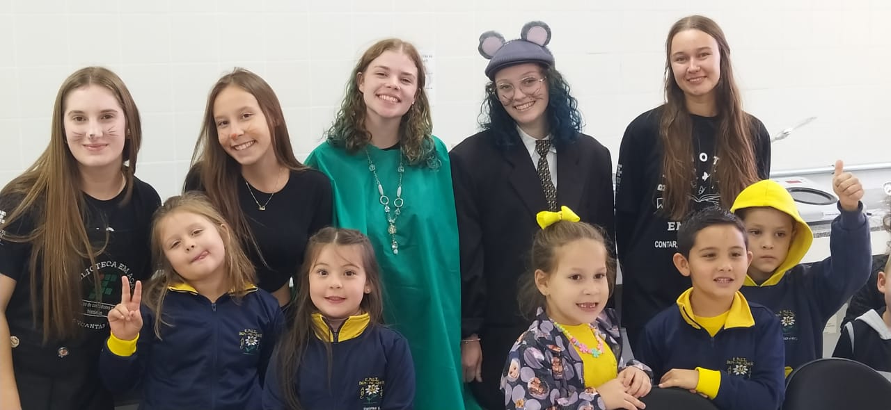 No dia 19 de abril, o projeto de extensão “Biblioteca em Ação: contar, encantar e educar”, desenvolvido no IFFar – Campus Santo Augusto, sob a coordenação da bibliotecária, Daniela Cristina Paulo d’Acampora, recebeu a visita de alunos da Escola de Educação Infantil Bem-Me-Quer, de Chiapetta.