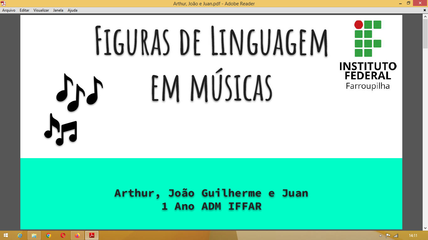 O professor de Língua Portuguesa e Literatura Brasileira, Edevandro Sabino da Silva, desenvolveu um trabalho nos primeiros anos dos Cursos técnicos integrados ao ensino médio de Administração e Agropecuária, que consistiu em identificar em letras de músicas as figuras de linguagem.