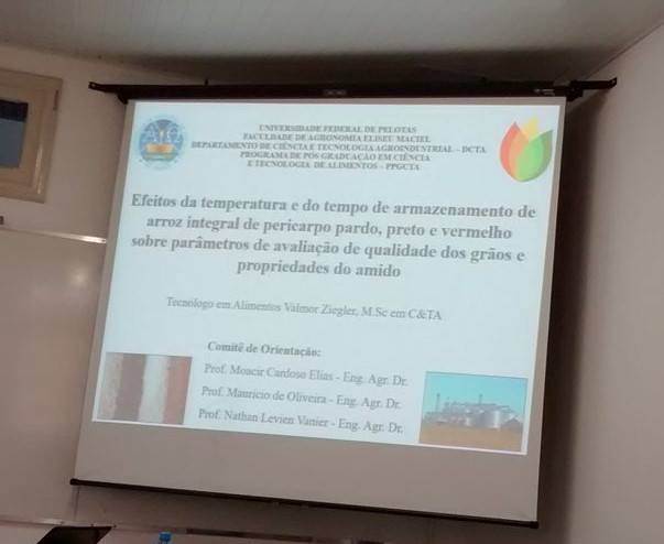 O trabalho “Efeitos da Temperatura e do tempo de armazenamento de arroz integral de pericarpo pardo, preto e vermelho, sobre parâmetros de avaliação de qualidade dos grãos e propriedades do amido”, teve como orientadores os professores, Dr. Moacir Cardoso Elias, Dr. Mauricio de Oliveira e Dr. Nathan Levien Vanier.