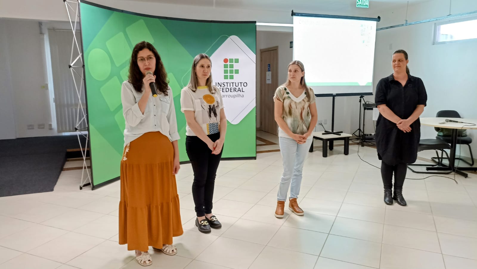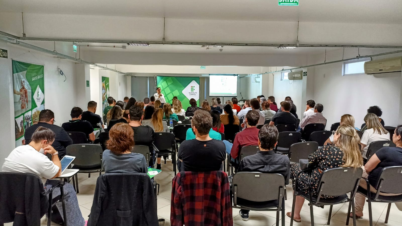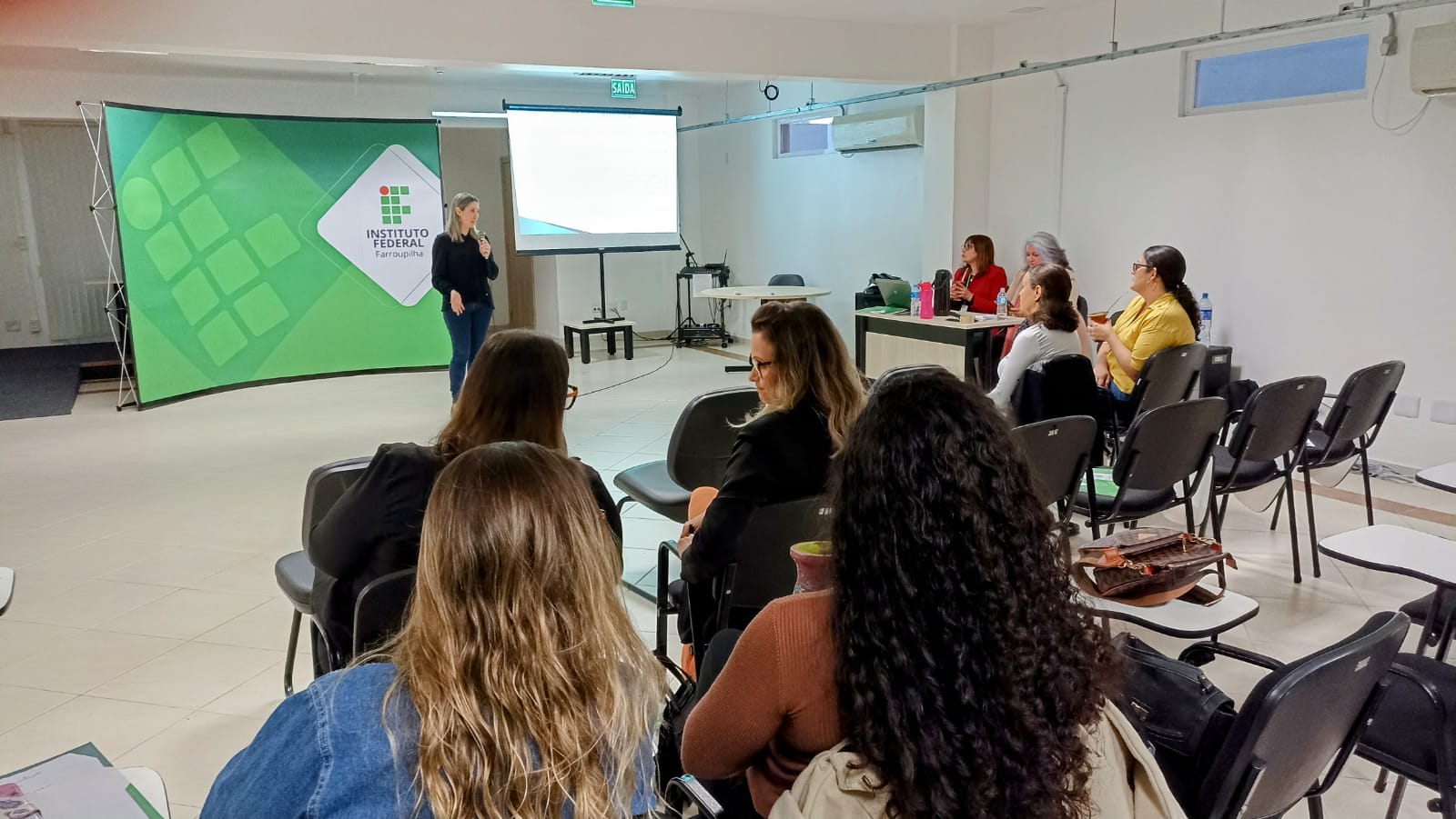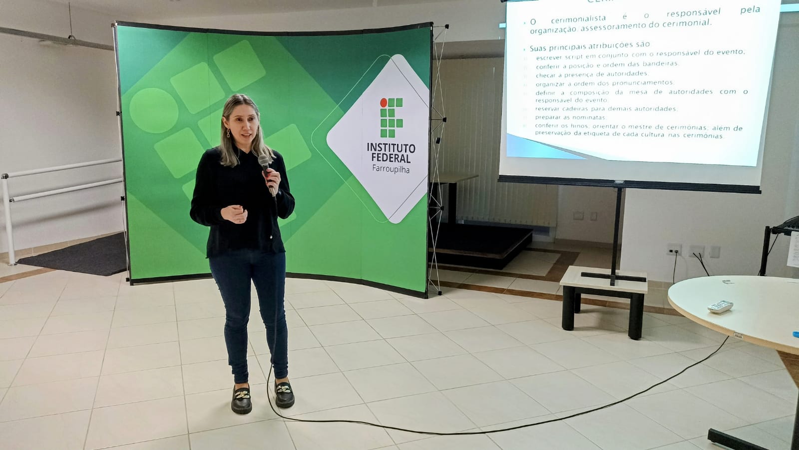 A jornalista do Campus Santo Augusto, Carla Maron, além de participar da formação como ouvindo, também foi uma das palestrantes do evento na programação de sexta-feira, abordando o tema “Cerimonial e Protocolo para Formaturas e Eventos Institucionais”.