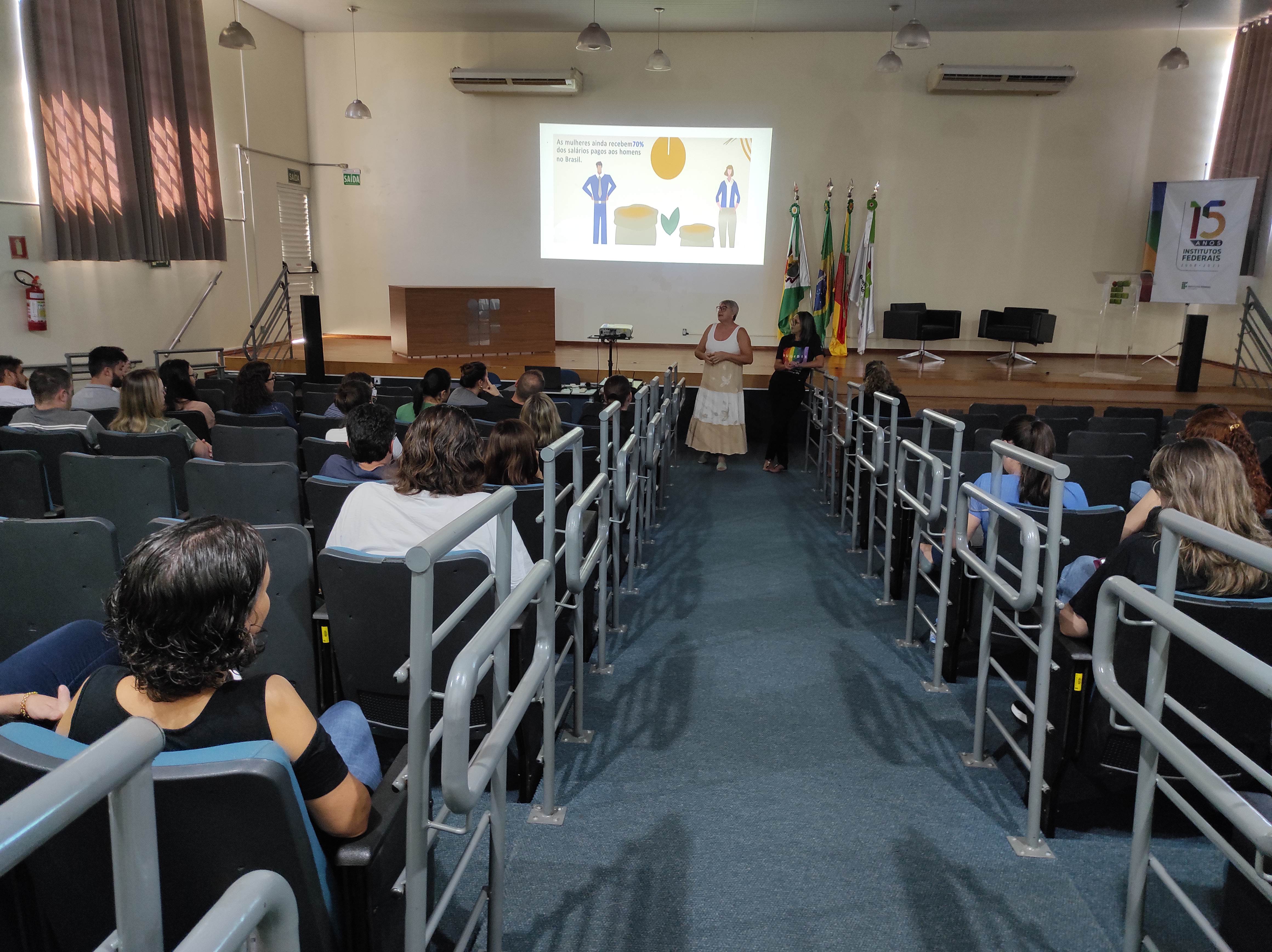 Na tarde de ontem, 06 de março, os servidores do IFFar – Campus Santo Augusto, foram convidados para participar, no auditório da instituição, de uma atividade alusiva ao Dia Internacional da Mulher, comemorado no dia 08 de março, com o tema “A Luta pela igualdade é uma construção coletiva”.