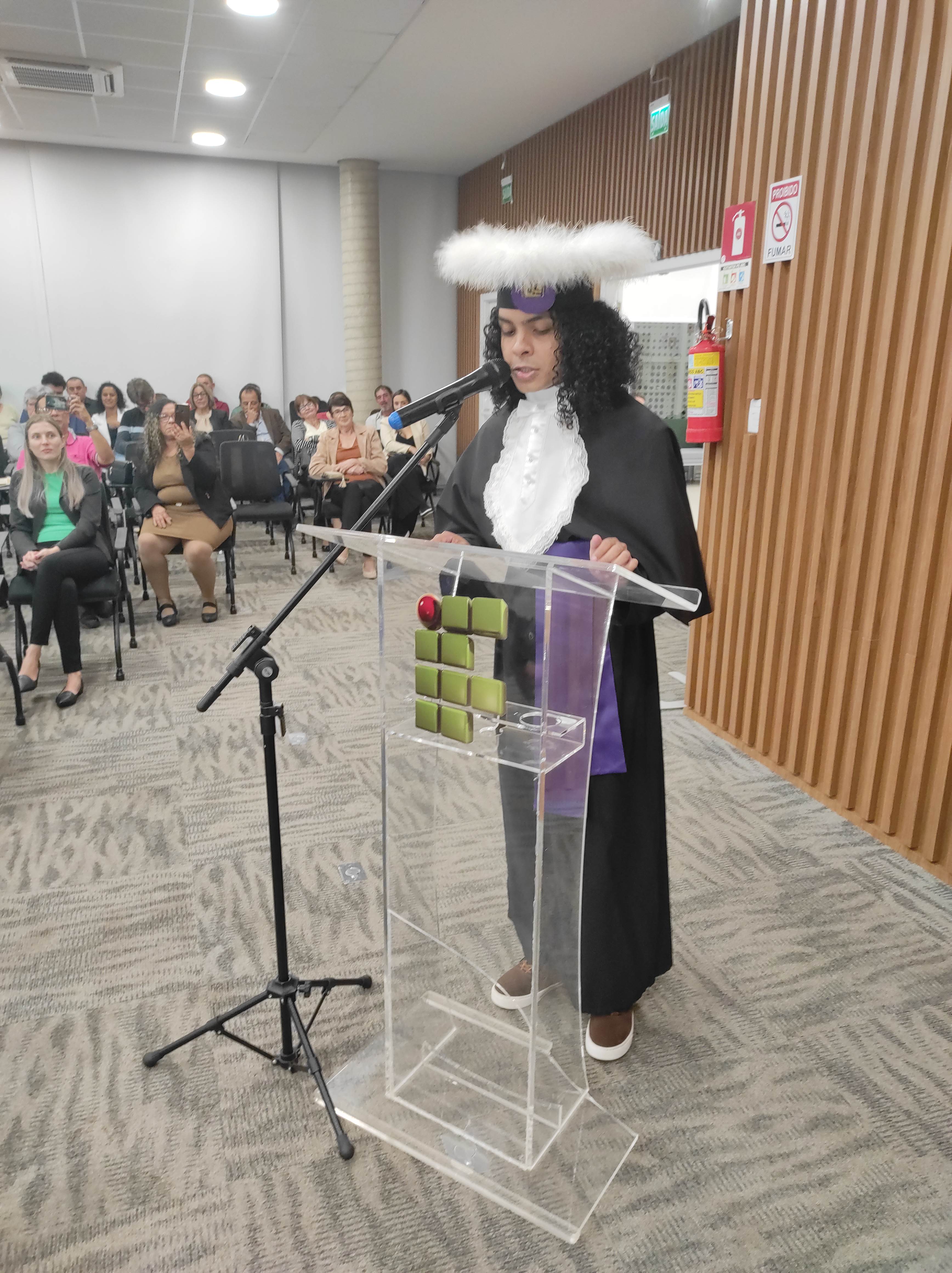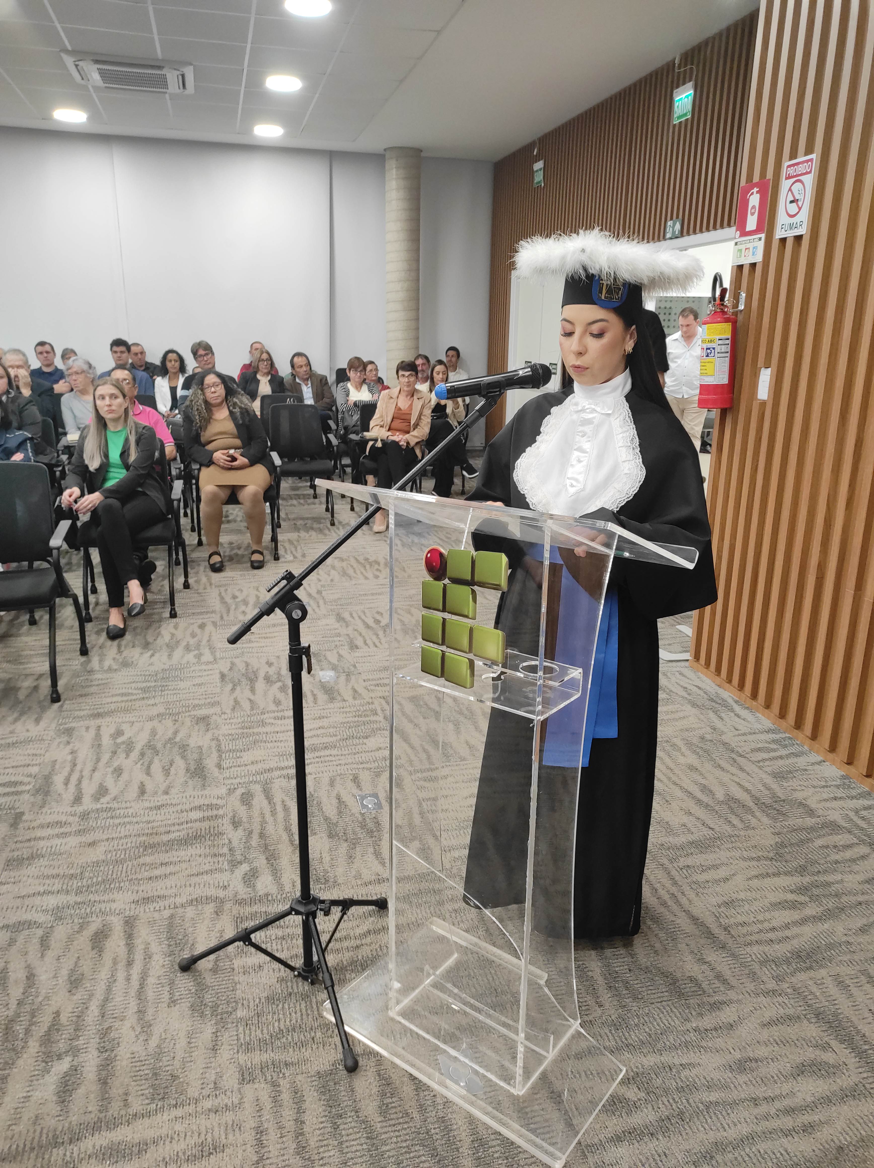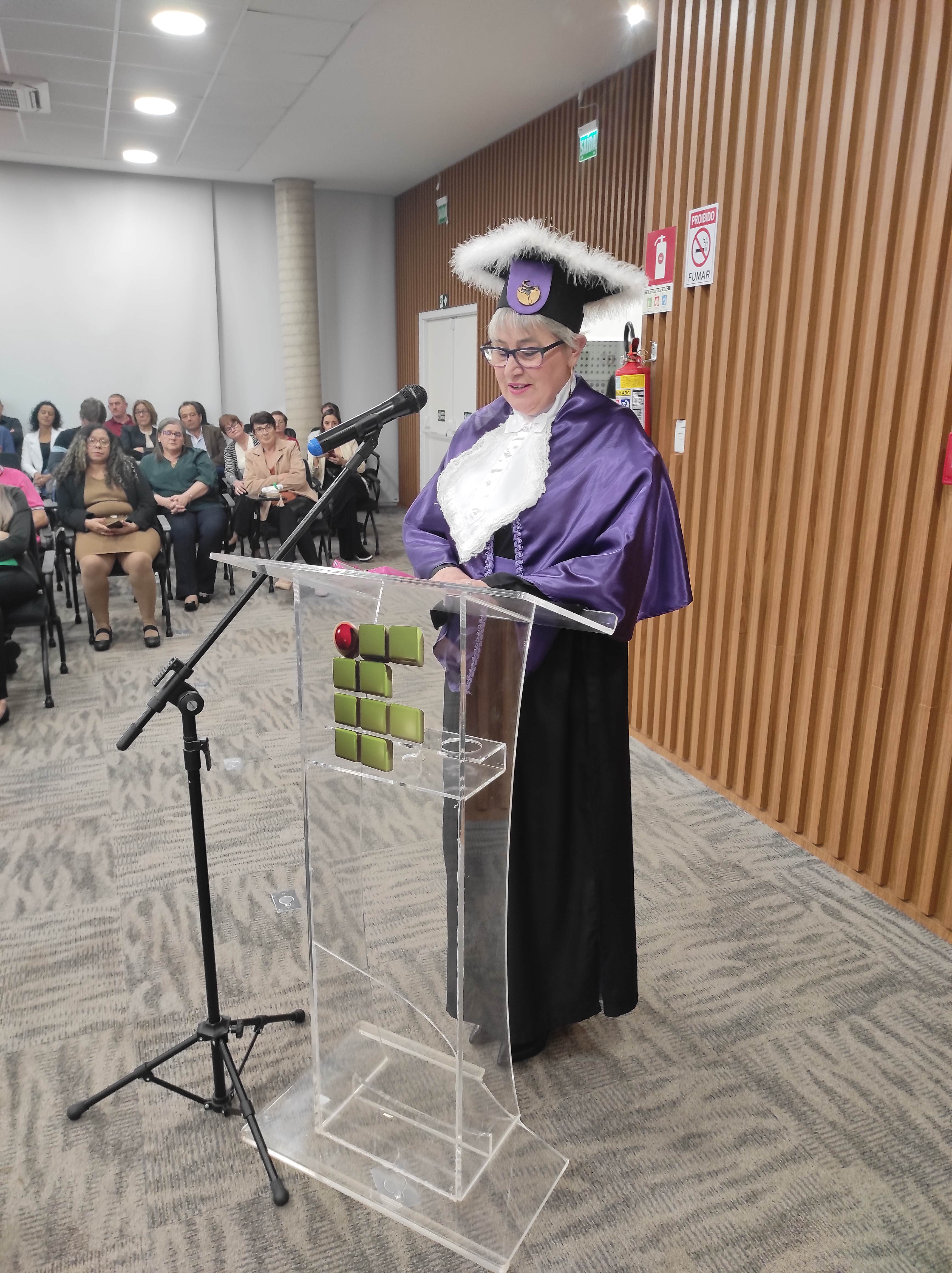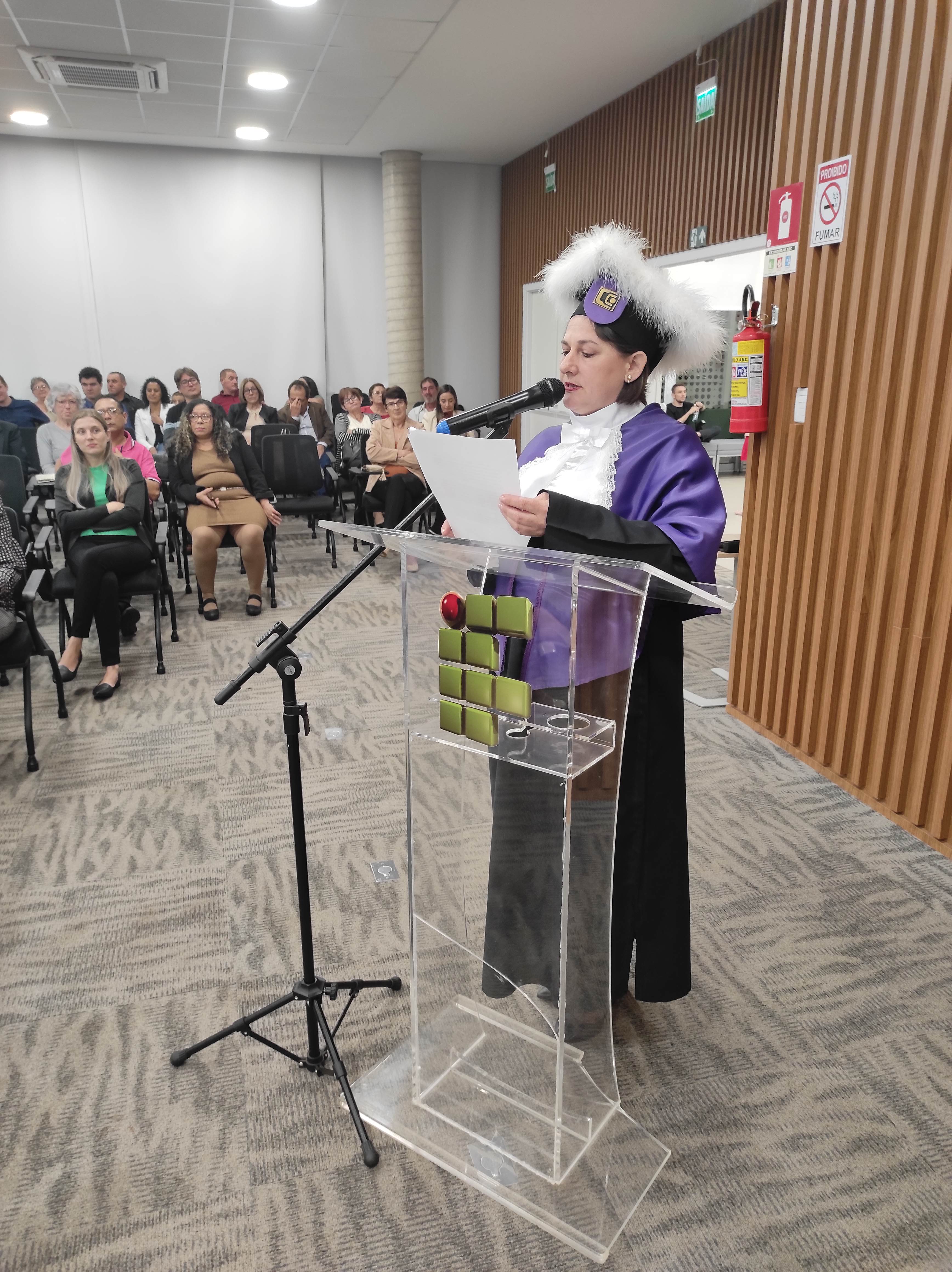 Em sua fala, a Diretora Márcia Fink, agradeceu ao Sicredi pela cedência do espaço e parabenizou os formandos pela conquista, destacando que o IFFar – Campus Santo Augusto há 16 anos tem buscado promover o Desenvolvimento Regional, dando acesso a cada vez mais pessoas a educação pública, gratuita e de qualidade, isso é reforçado a cada ano por meio das diversas turmas de formandos dos cursos superiores oferecidos pela instituição.