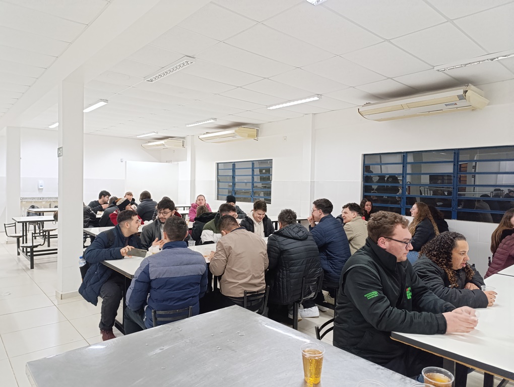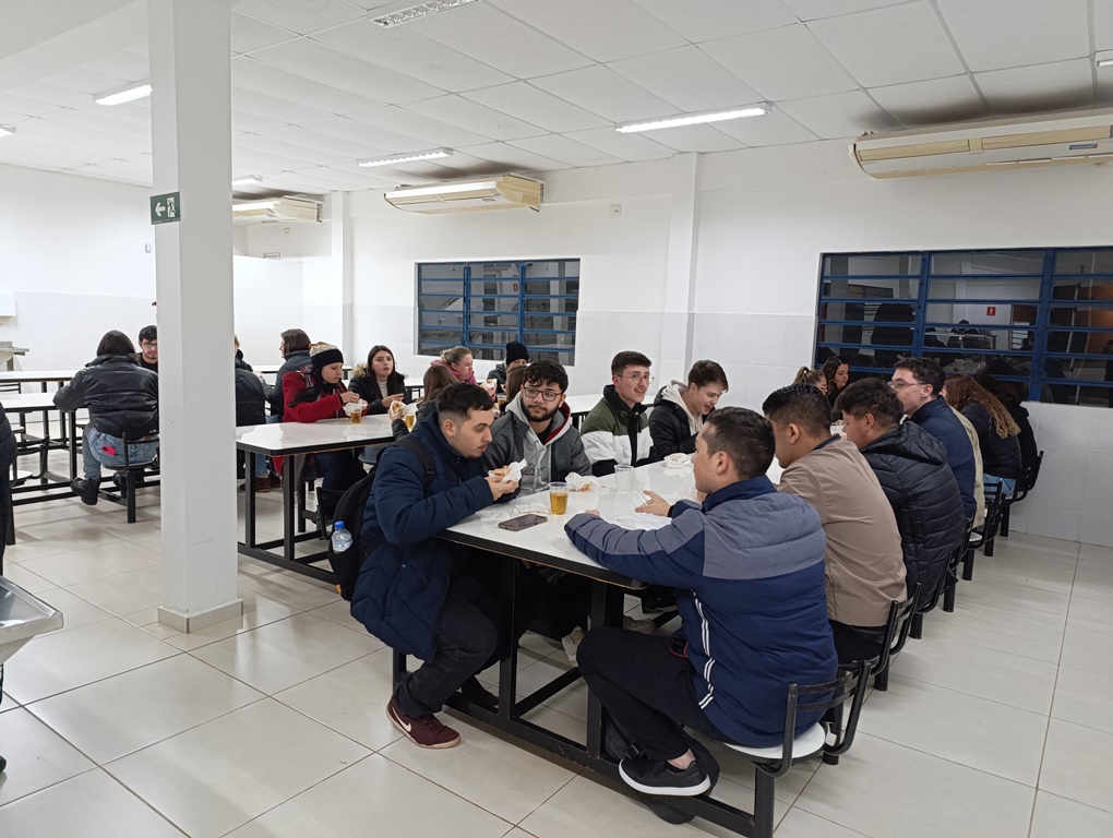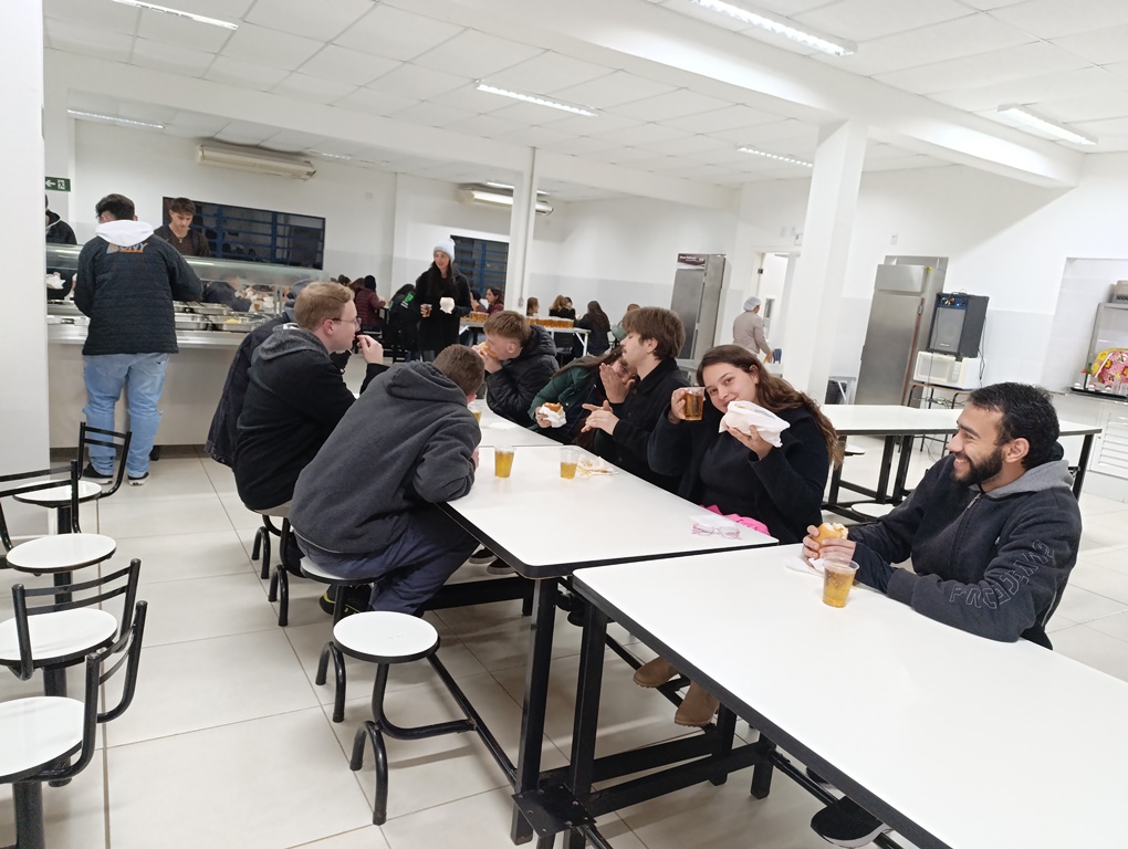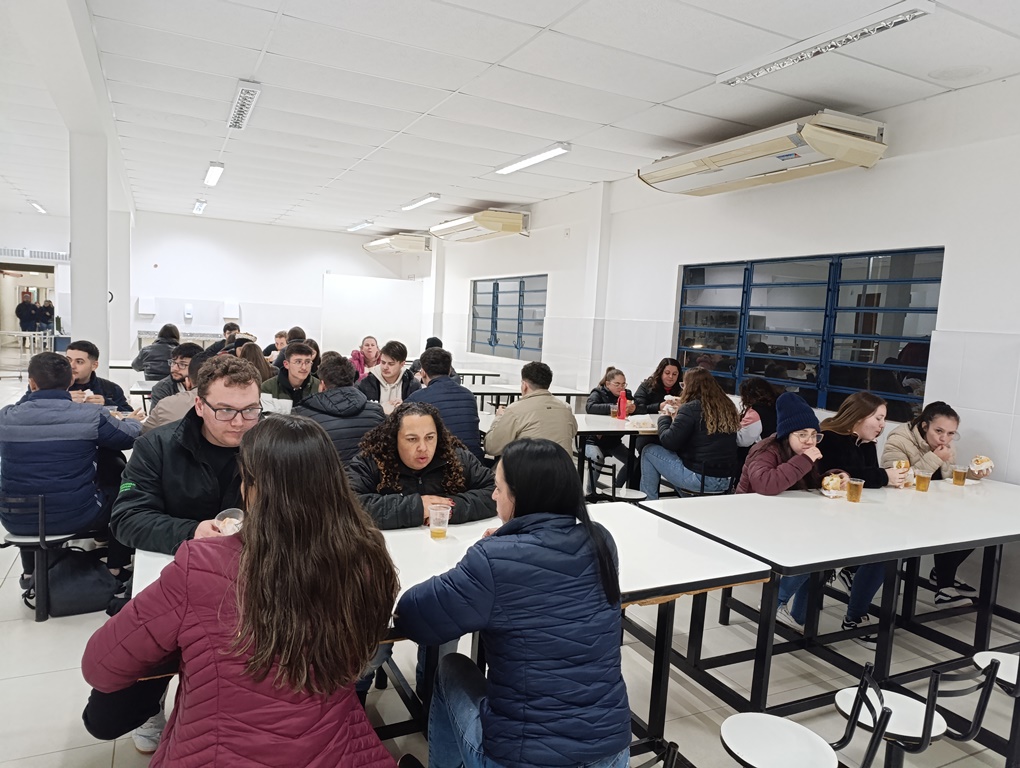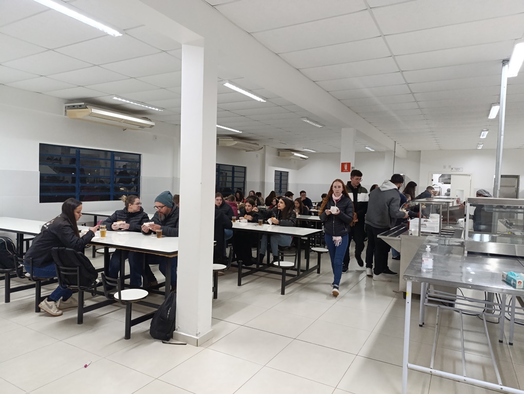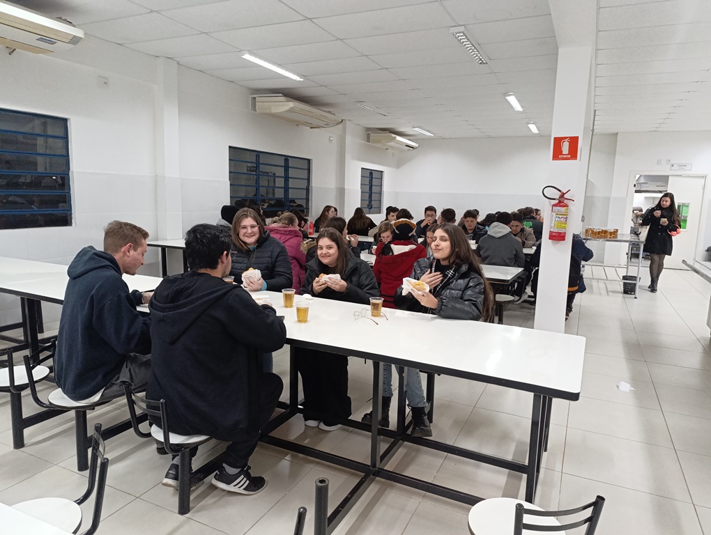 À noite, os estudantes dos cursos superiores, foram conduzidos por volta das 20h ao refeitório da instituição, juntamente com professores e servidores, onde puderam degustar um delicioso Buffet de cachorro-quente.