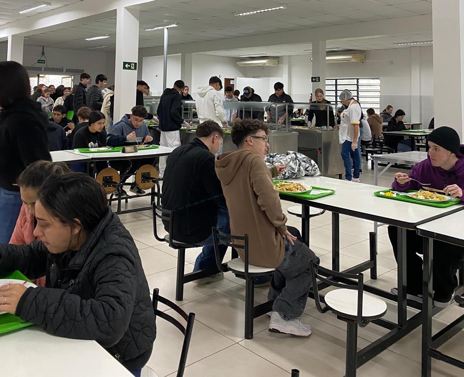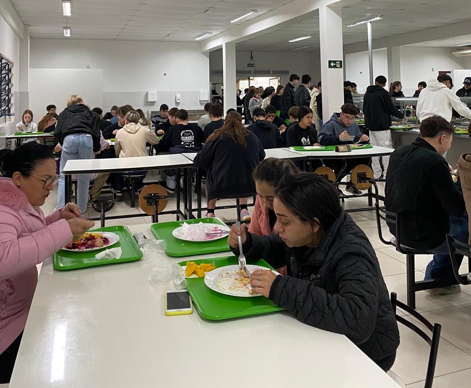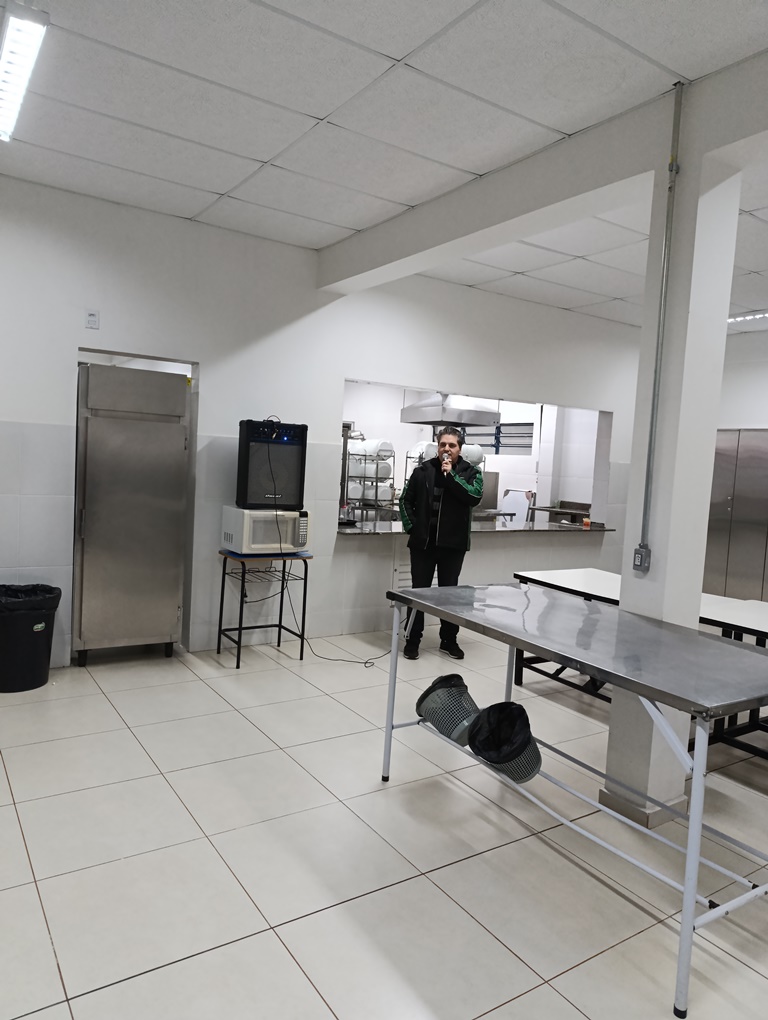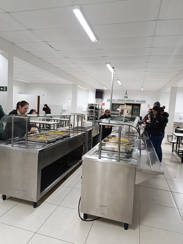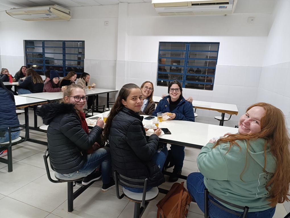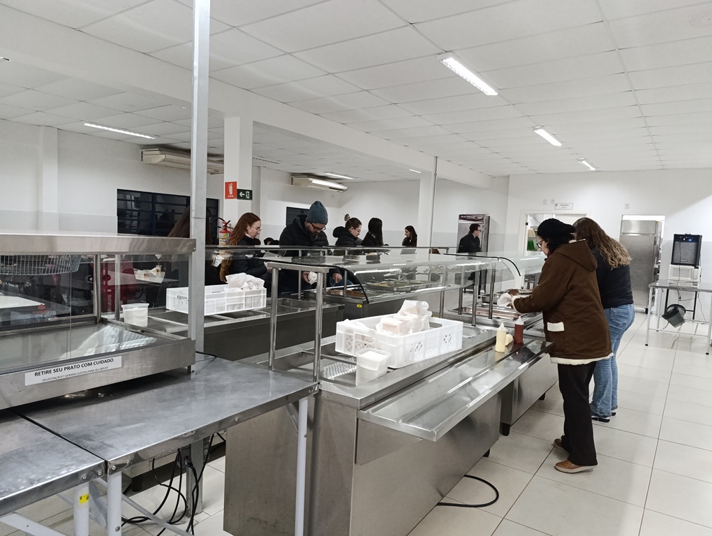 À noite, os estudantes dos cursos superiores, foram conduzidos por volta das 20h ao refeitório da instituição, juntamente com professores e servidores, onde puderam degustar um delicioso Buffet de cachorro-quente.