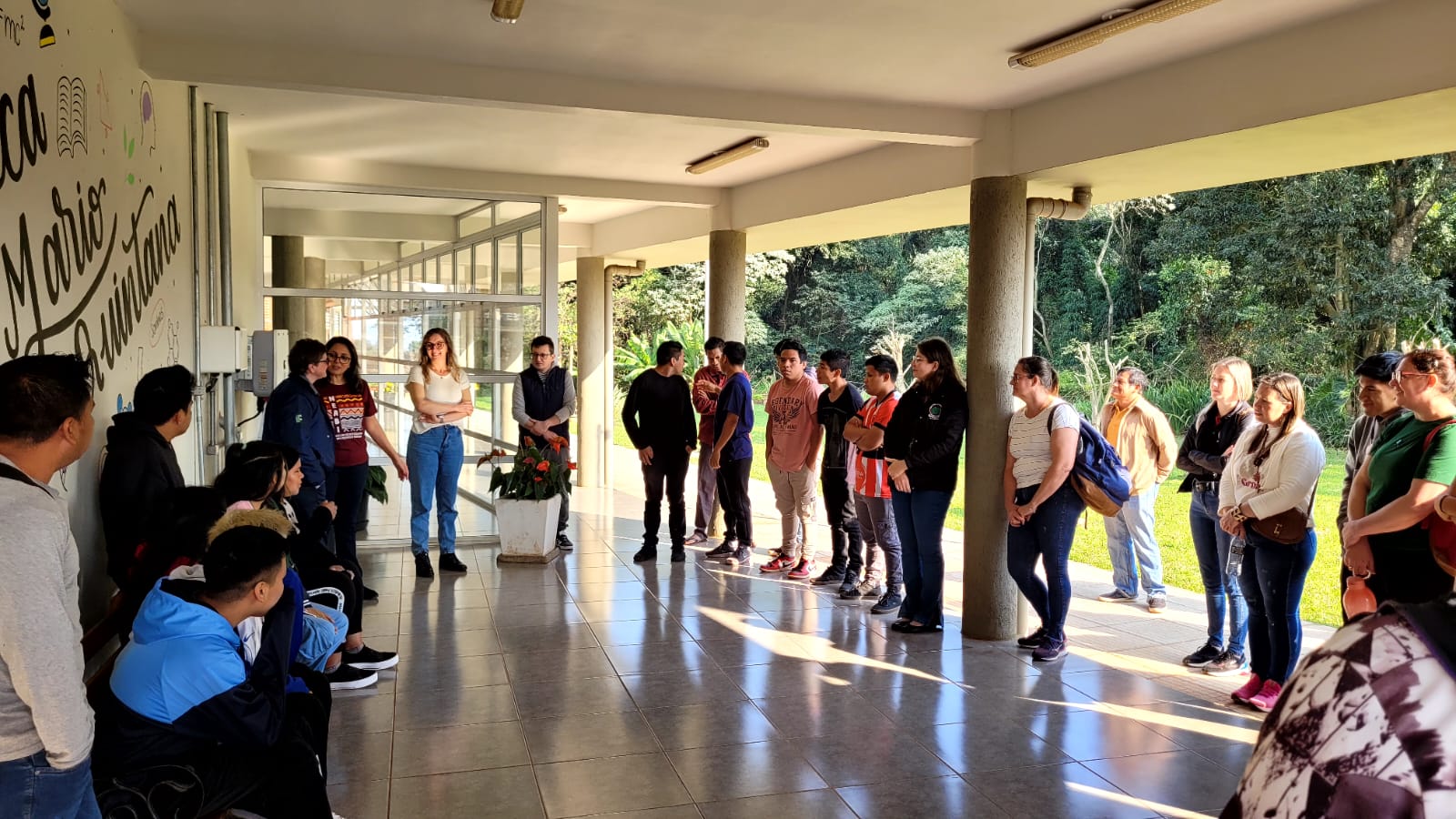 O evento teve início pela manhã, com a recepção dos estudantes de Ensino Médio e Pós Médio (Magistério) do Instituto Estadual de Educação Indígena Ângelo Manhká Miguel, da Terra Indígena do Inhacorá do município de São Valério do Sul, acompanhados pela Diretora, Diana Lambricht Weiler, e demais professores da escola.