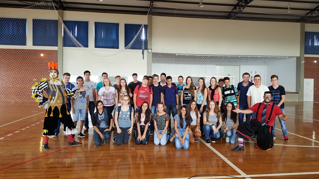 Pela manhã, os alunos receberam as boas-vindas da Diretora Geral, Verlaine Denize Brasil Gerlach, da Diretora de Ensino, Márcia Fink, do Grêmio Estudantil, dos professores e técnicos administrativos presentes e na sequência participaram de um teatro interativo com dois componentes da Companhia Circense Burzum, da cidade de Santo Ângelo-RS. A atividade, animada e divertida, empolgou os alunos e professores presentes.