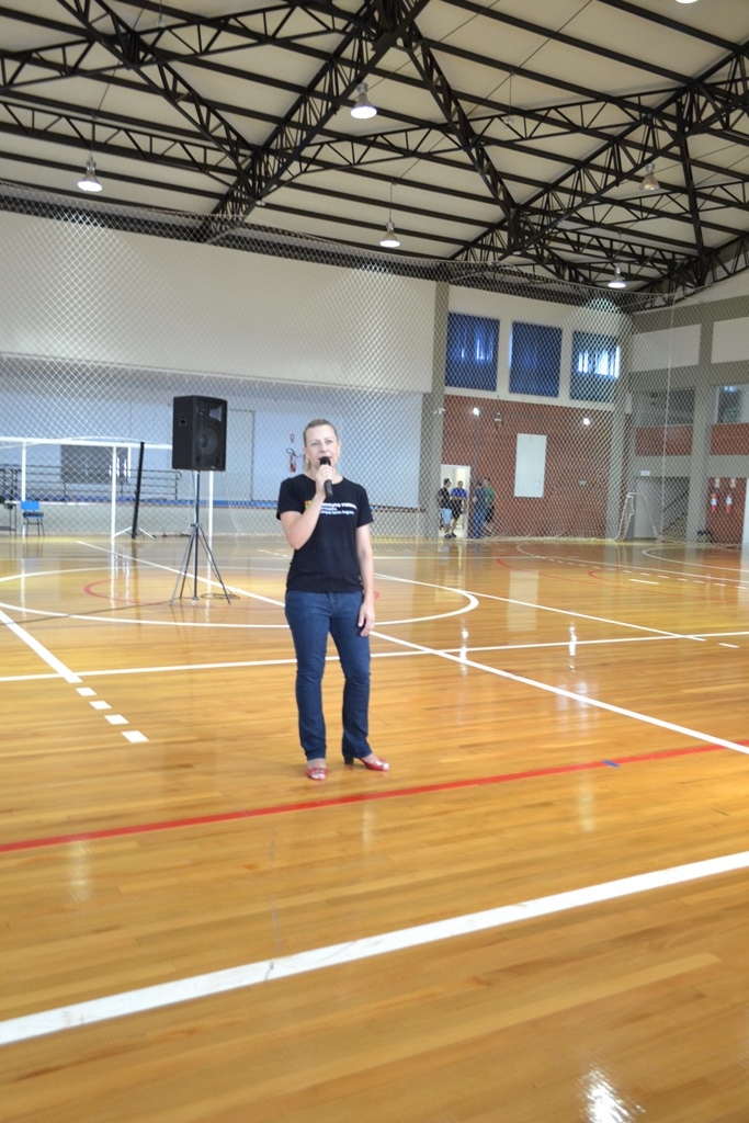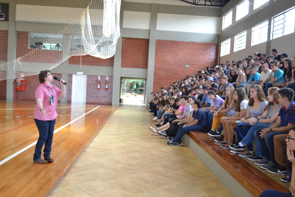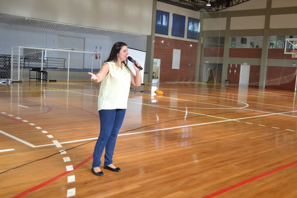 Diretora de Ensino, Márcia Fink animando os alunos