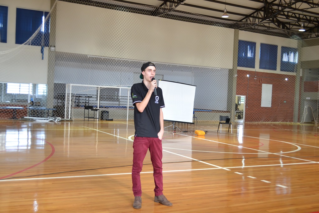 Presidente do Grêmio, Theo, falando aos alunos