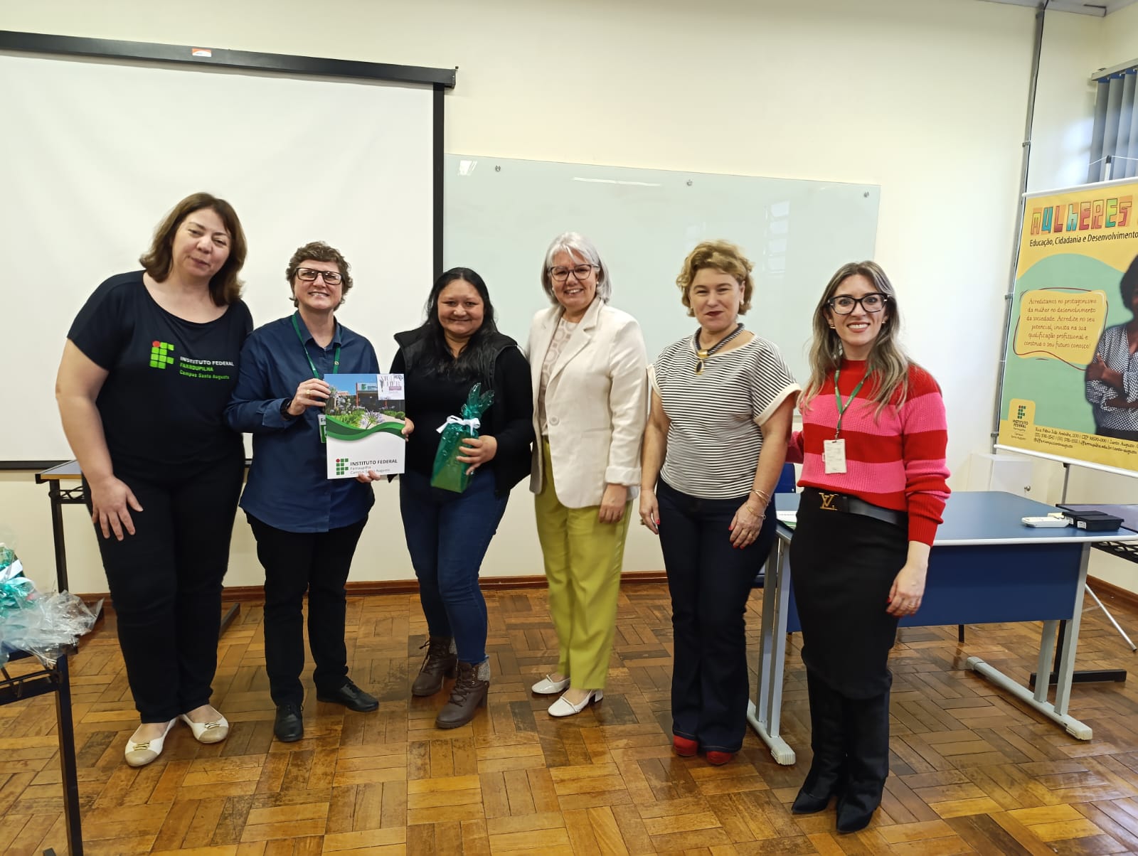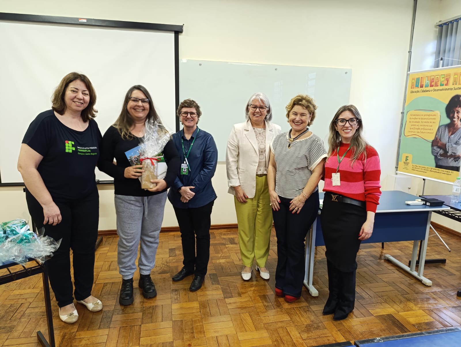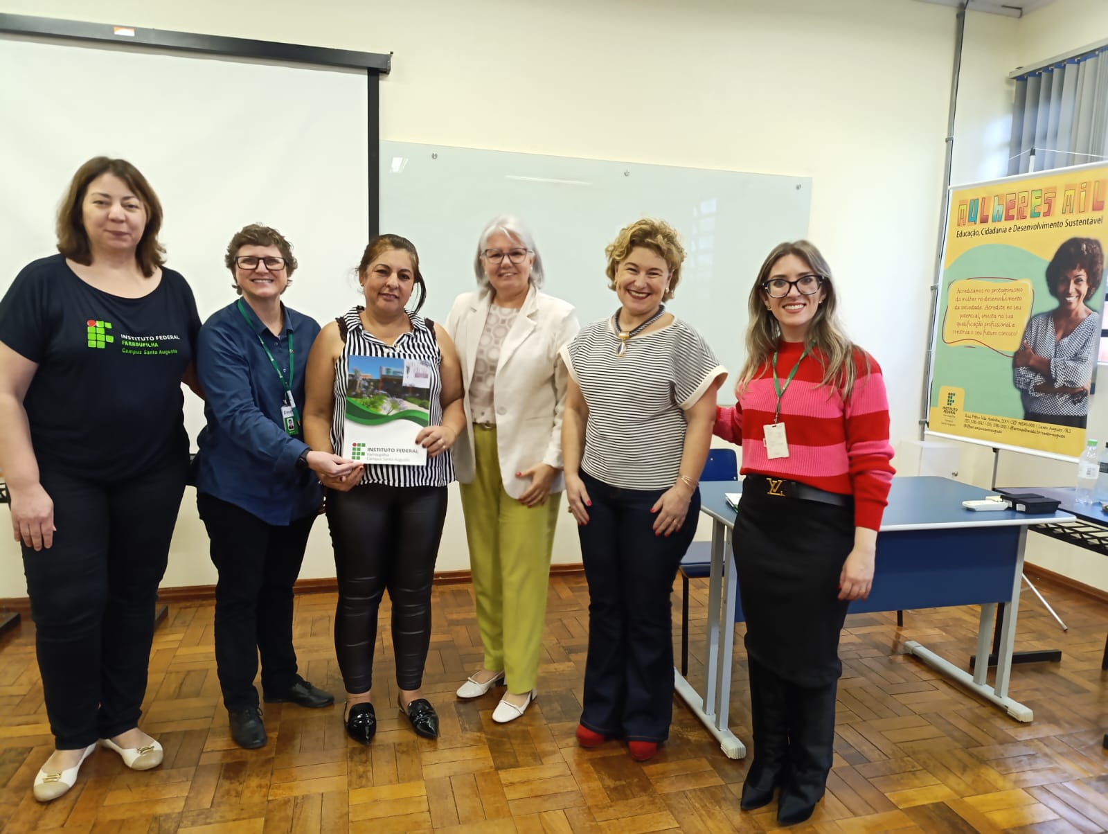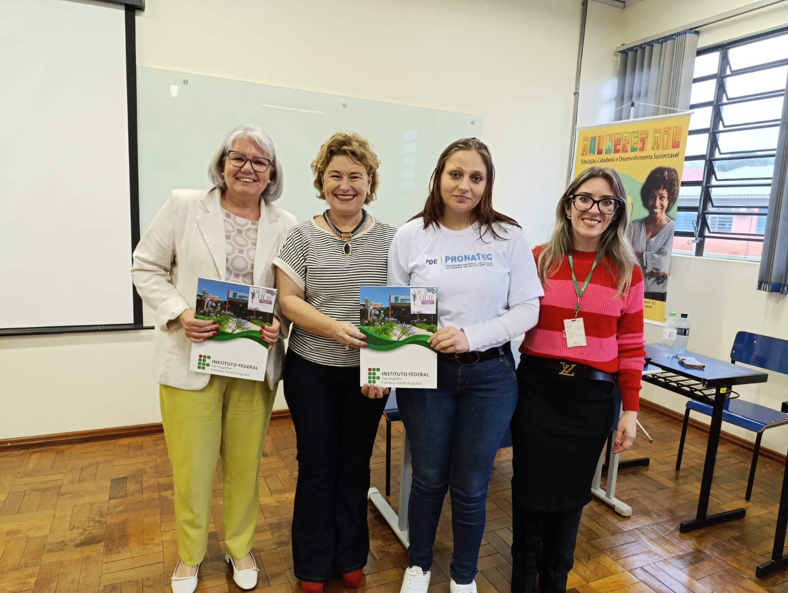 O evento realizado na sala F20, contou com a presença das alunas concluintes, da Diretora Geral do Campus Santo Augusto, Márcia Fink; da Pró-Reitora de Extensão do IFFar, Ângela Marinho, da Coordenadora de Programas Sociais da Pró-Reitoria de Extensão e Coordenadora institucional do Programa Mulheres Mil no IFFar, Denise Valduga Batalha; da Secretária Municipal de Habitação e Assistência Social de Santo Augusto, Márcia Fucillini; do Diretor de Pesquisa Extensão e Produção do IFFar - Campus – Santo Augusto, Ricardo Paraginski e da Coordenadora do Programa Mulheres Mil no Campus Santo Augusto, professora Melissa dos Santos Oliveira.
