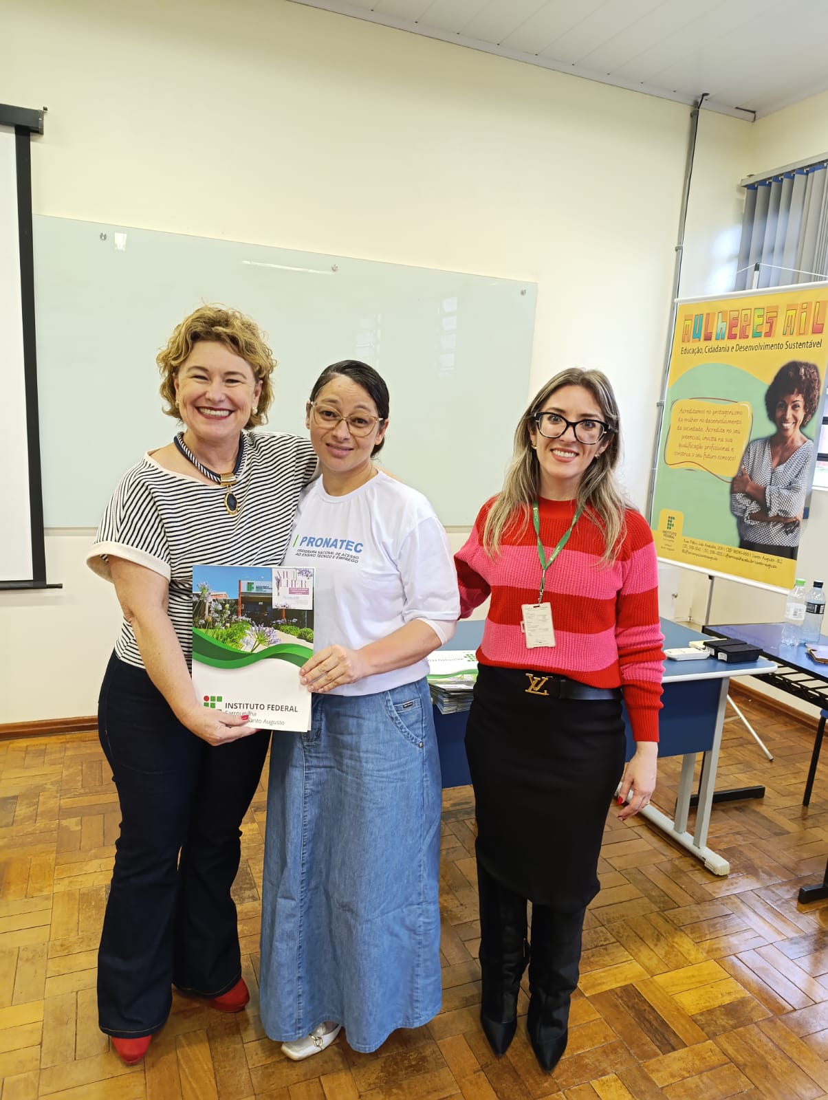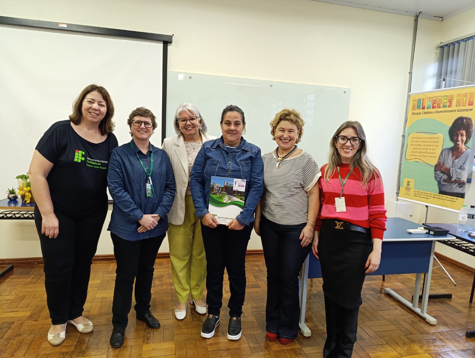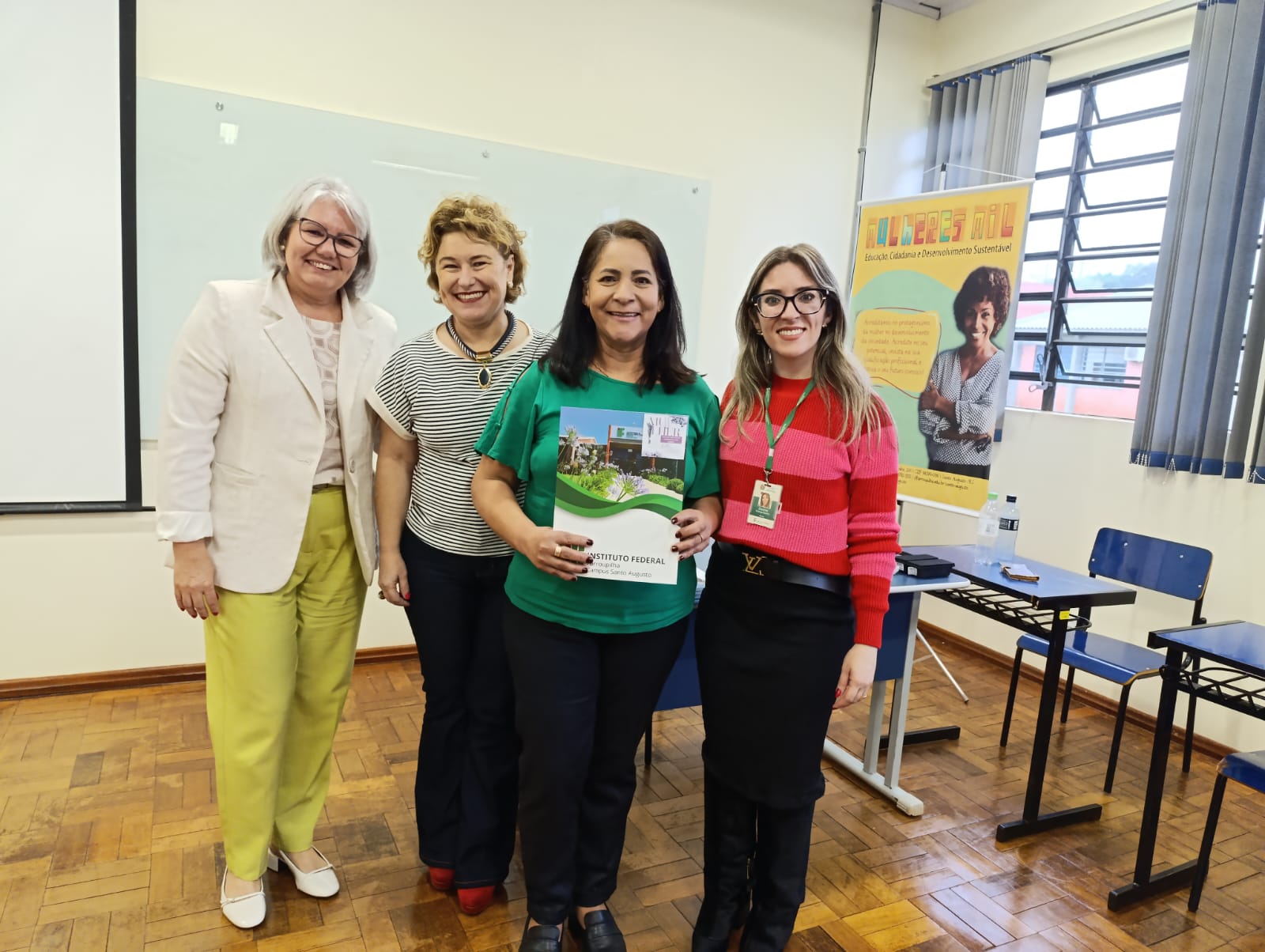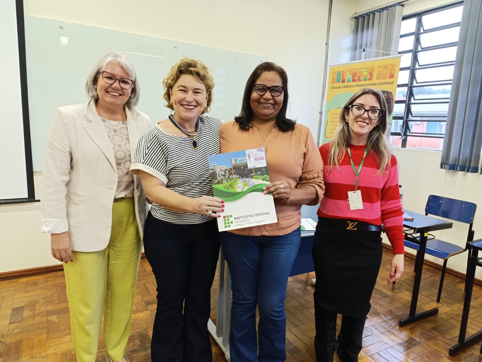 O evento realizado na sala F20, contou com a presença das alunas concluintes, da Diretora Geral do Campus Santo Augusto, Márcia Fink; da Pró-Reitora de Extensão do IFFar, Ângela Marinho, da Coordenadora de Programas Sociais da Pró-Reitoria de Extensão e Coordenadora institucional do Programa Mulheres Mil no IFFar, Denise Valduga Batalha; da Secretária Municipal de Habitação e Assistência Social de Santo Augusto, Márcia Fucillini; do Diretor de Pesquisa Extensão e Produção do IFFar - Campus – Santo Augusto, Ricardo Paraginski e da Coordenadora do Programa Mulheres Mil no Campus Santo Augusto, professora Melissa dos Santos Oliveira.