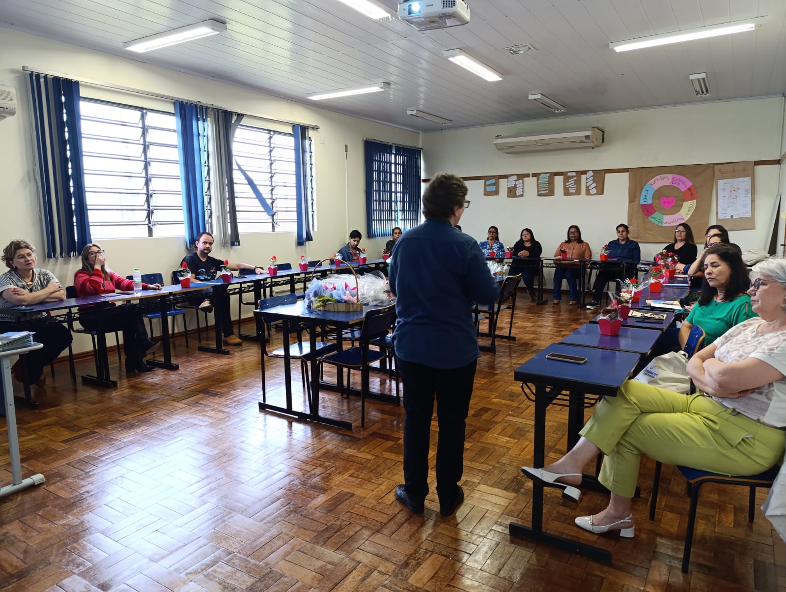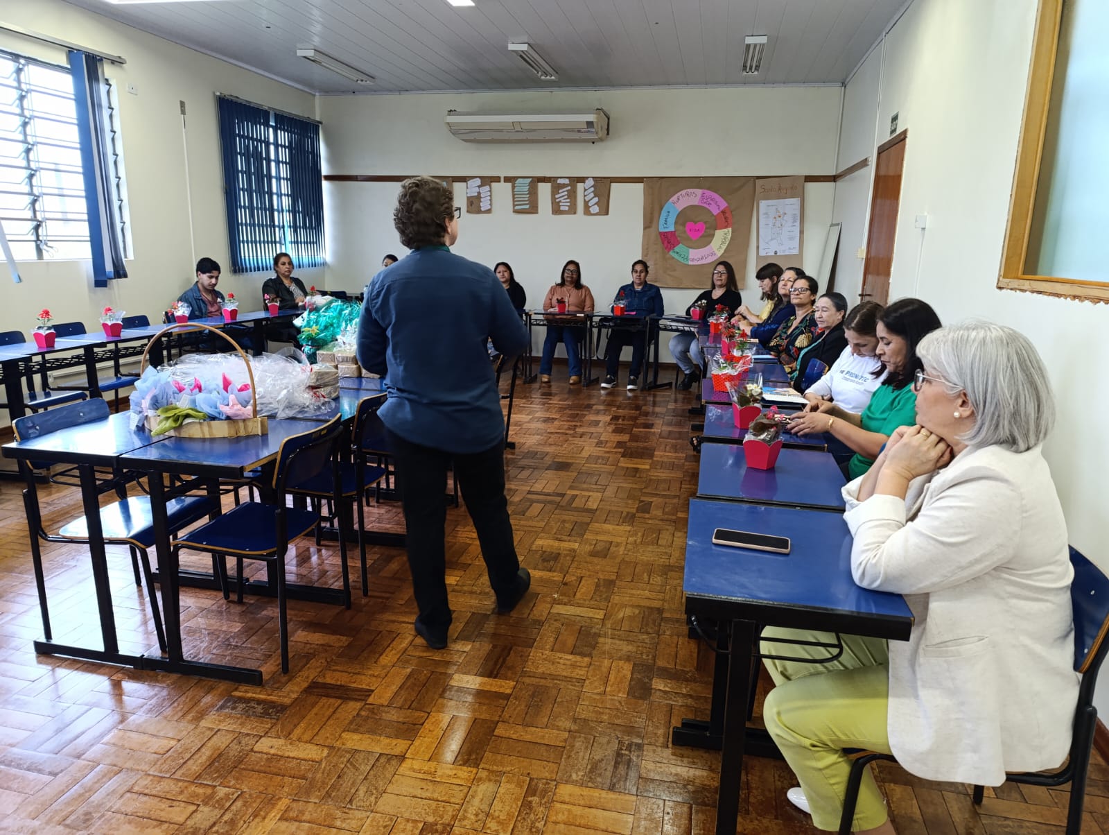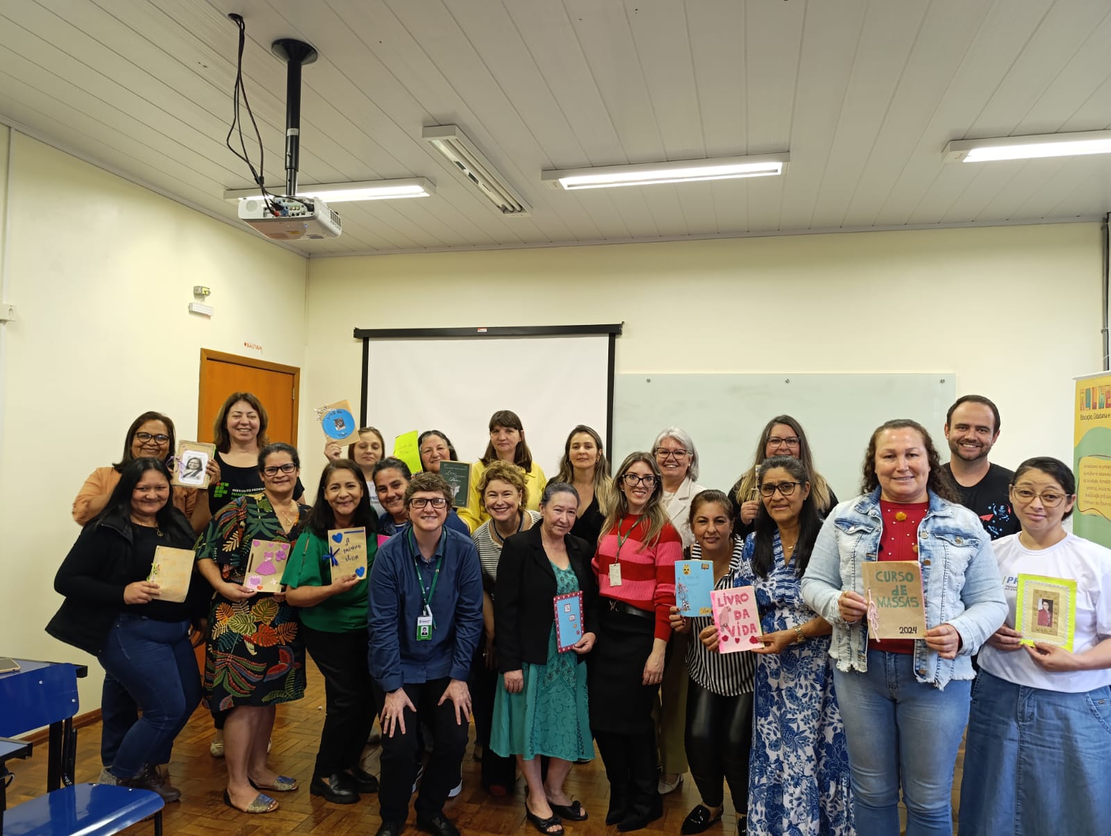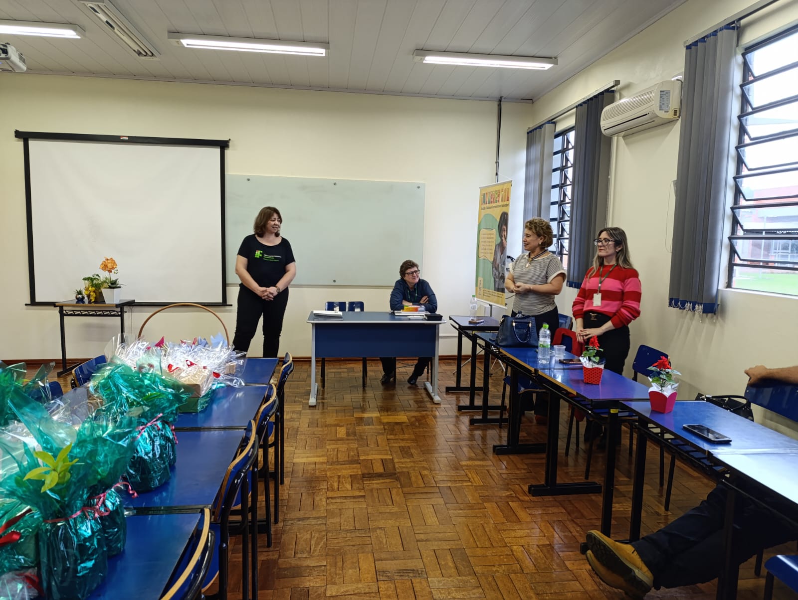 Na ocasião, a Diretora Márcia Fink fez uma fala sobre Comunicação não Violenta. Na sequência, as alunas do curso apresentaram os livros que criaram com suas histórias de vida, com relatos que emocionaram a todos os presentes, culminando com a entrega dos certificados e uma confraternização, tendo como cardápio, itens produzidos durante as últimas aulas do curso.
