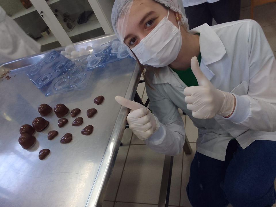 Na quinta-feira, dia 17, aconteceram as seguintes oficinas práticas: Produção de Chocolates com a professora Drª Leidi Daiana Preichardt no laboratório de Frutas e Hortaliças; Produção de Nuggets de Frango com a professora Janaina Amantina Müller e a professora Drª Tatiane Timm Storch, no laboratório de Carne e Derivados; Produção de Sabão com a técnica de laboratório Denise Rocha, no laboratório de Bromatologia; e Determinação de Lactose no Leite, com Diego Santiago Tupuna Yerovi e o professor Dr Aelson Brum, no Laboratório de Química.