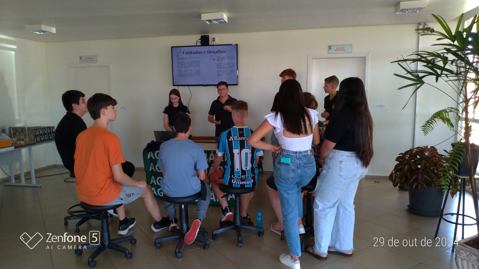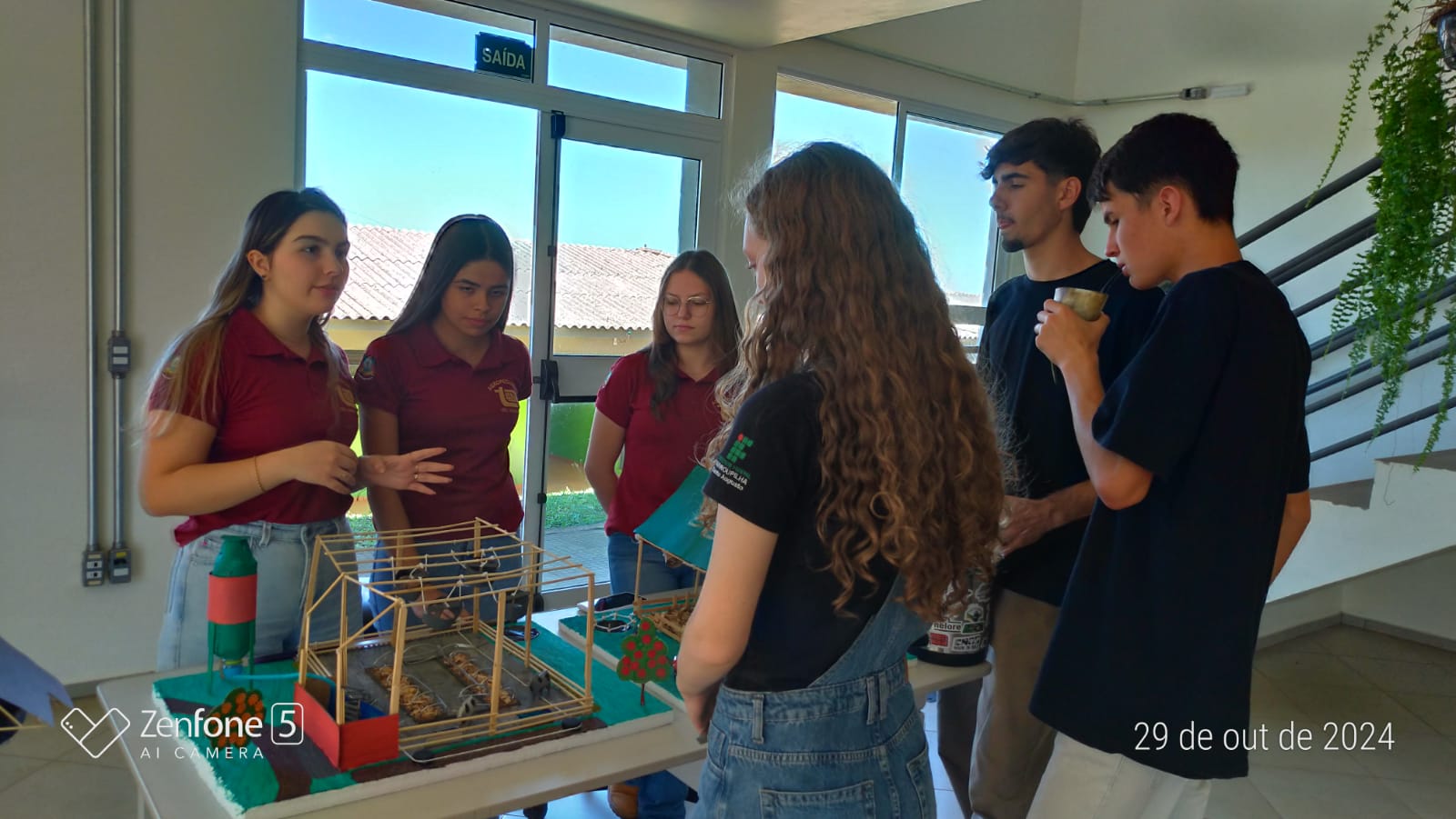 Os trabalhos dos estudantes do 2º ano foram apresentados na parte da tarde, tendo como tema “Sustentabilidade aplicada às atividades agropecuárias”, envolvendo as disciplinas de Biologia (Clarinês Hames), Química (Marieli da Silva Marques), Solos (Lessandro De Conti), Agricultura I (Hamilton Rosa), Forragicultura (Amanda Almeida), Zootecnia I (Patrícia Mombach), Infraestrutura I (Tayane Mesquita) e Física (Tiago Silva de Ávila)