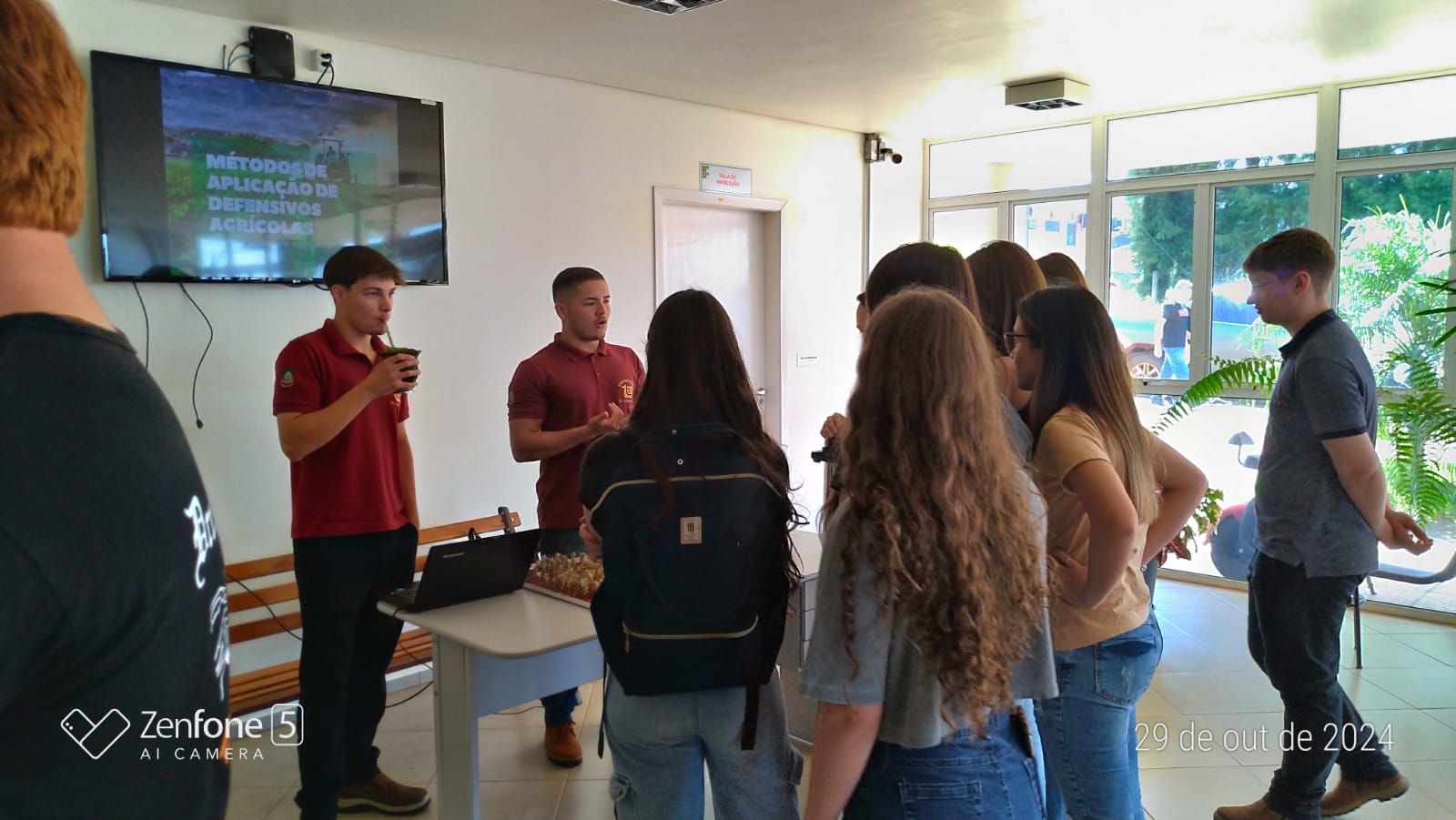 A exposição dos trabalhos dos estudantes do 3º ano aconteceu pela manhã e trouxe como tema “Diversos assuntos sobre as inovações agropecuárias”, envolvendo as disciplinas de Agricultura II (Hamilton Rosa), Agricultura III (Ricardo Paraginski), Infraestrutura II (Lidiane Walter), Zootecnia II (Edna Nunes), Extensão Rural (Tarcísio Samborski) e Língua Portuguesa (Cleiton R. Silva), com o objetivo de capacitar os estudantes para organização de Dia de Campo e eventos, prática essa constante na atuação do Técnico.