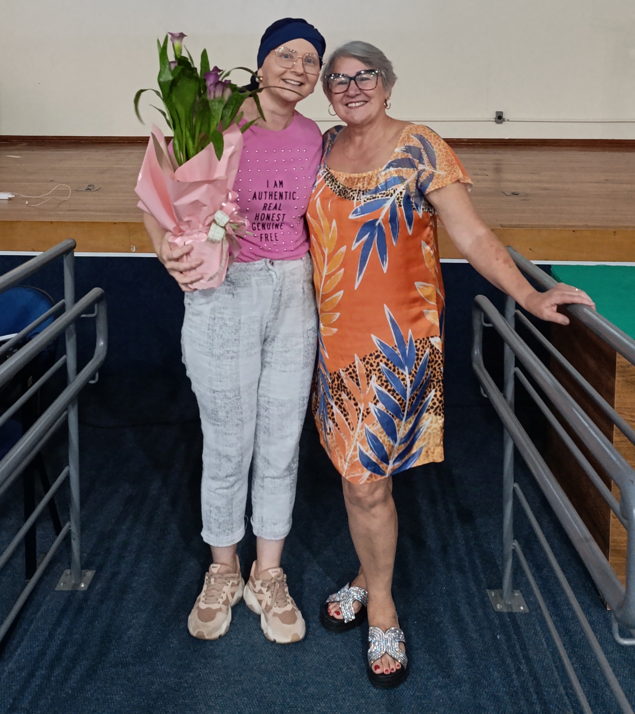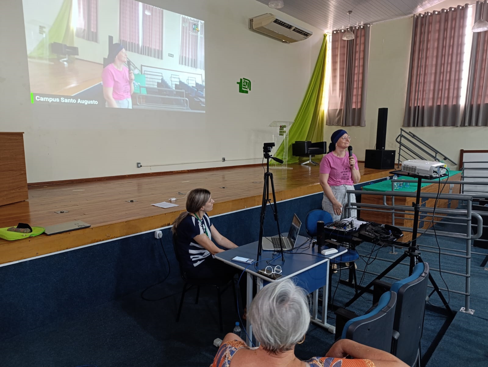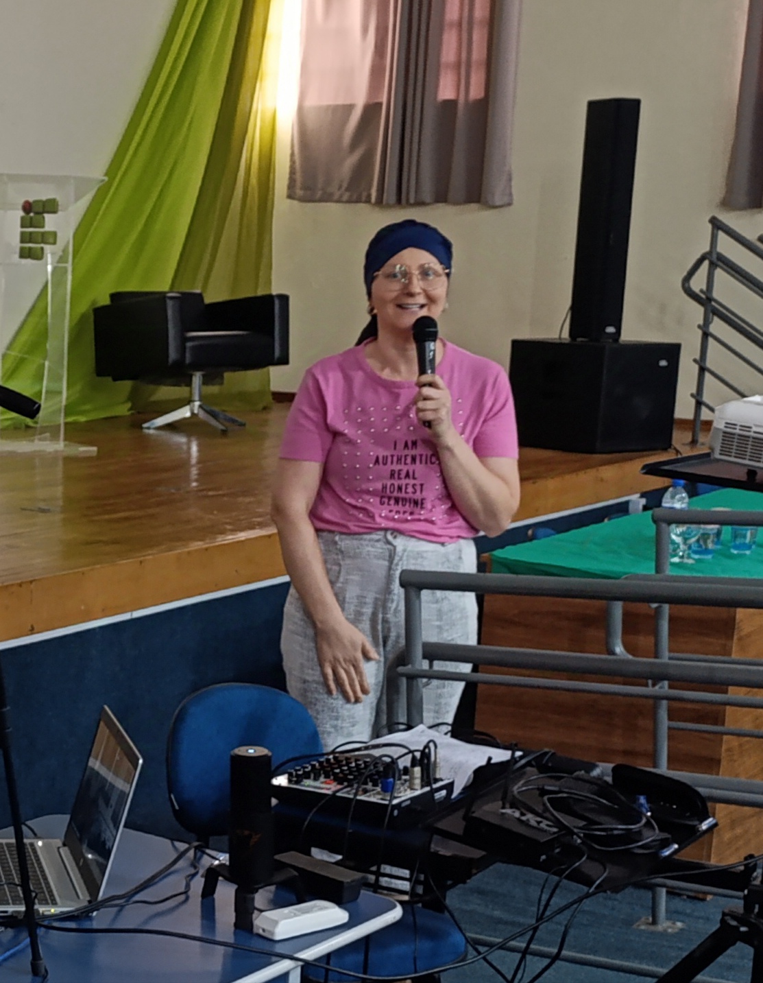 Na sequência, houve a participação especial da professora Beatris Gattermann, que está passando por tratamento contra um câncer de mama, a qual explicou como foi o processo de diagnóstico da doença, a cirurgia para a retirada do tumor, as quimioterapias e as radioterapias. Beatris emocionou a todos os presentes com seu relato, principalmente pelo fato dela ter enfrentado descoberto a doença no final de sua gestação, e ter enfrentado o tratamento logo após o nascimento se sua filha mais nova.