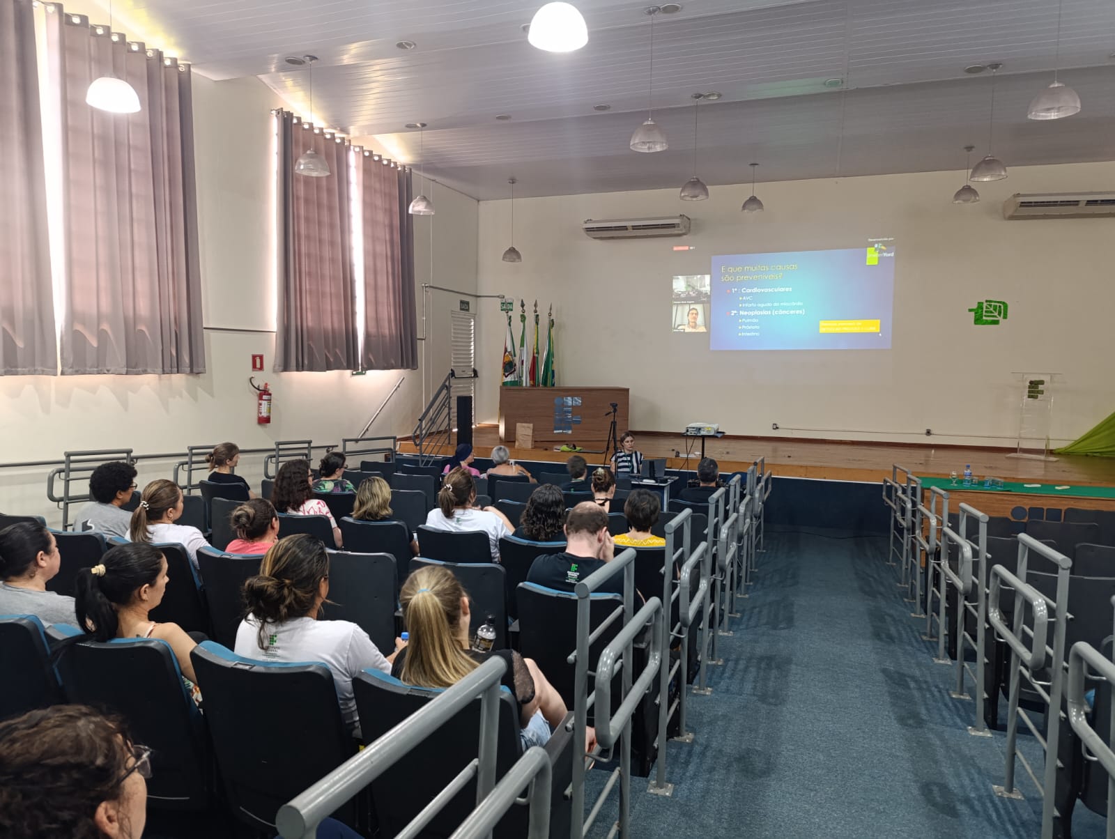 Também participaria da tarde com uma fala sobre Câncer de Mama, a médica Mastologista, Betina Vollbrecht, a qual não pode realizar sua fala devido a uma emergência, mas ela irá nos próximos dias gravar um vídeo com a palestra que será disponibilizado no Youtube do IFFar – Campus Santo Augusto.