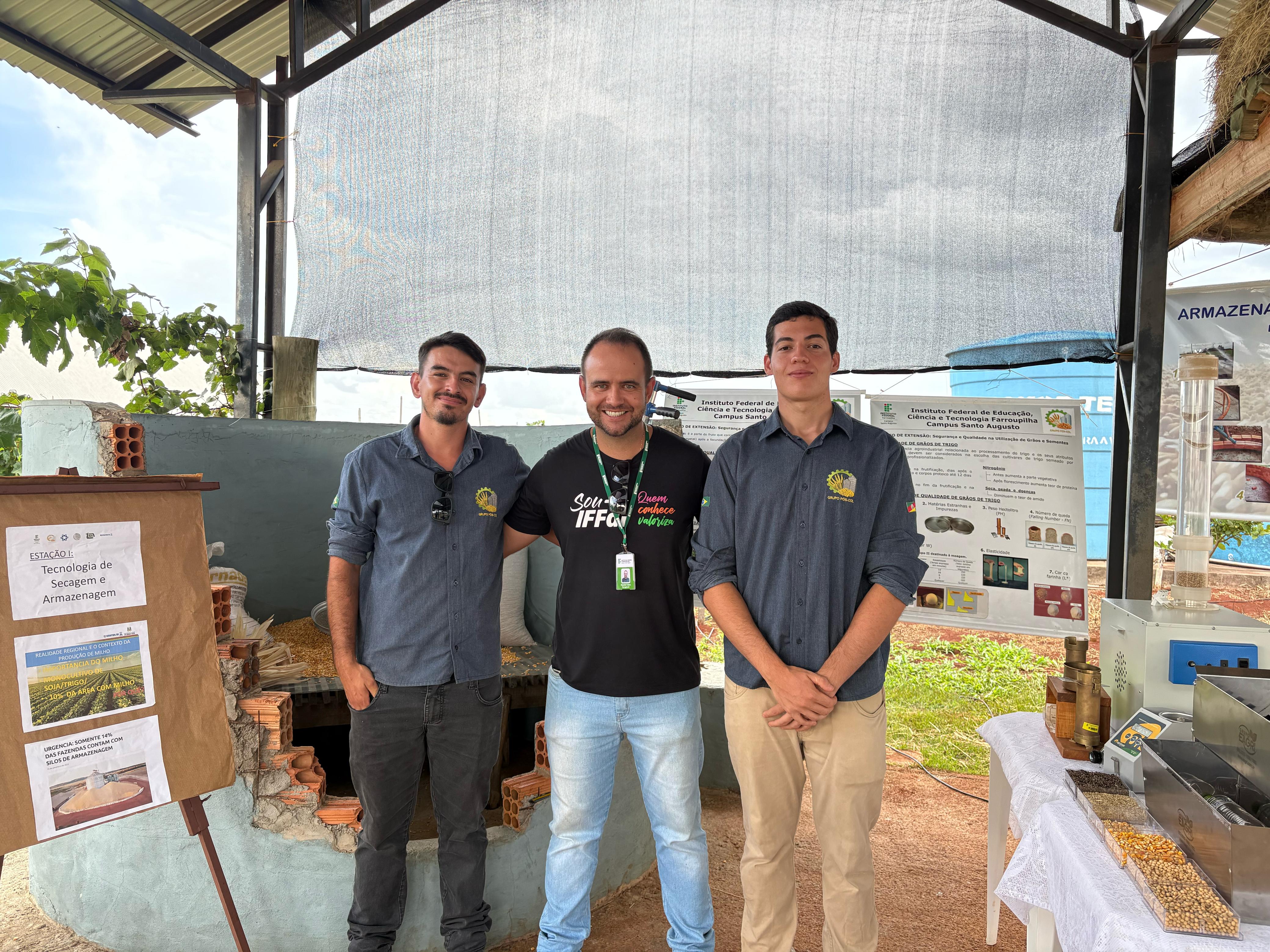 Os estudantes bolsistas do Grupo Pós-Col: Ensino, Pesquisa e Extensão em Pós-Colheita e Qualidade de Grãos e Sementes, participaram junto ao estande da Emater apresentando as ações realizadas pelo grupo, principalmente no que se refere à qualidade de grãos e sementes, focados no Sistema de Silo Secador utilizado na região e que busca difundir a sua utilização.
