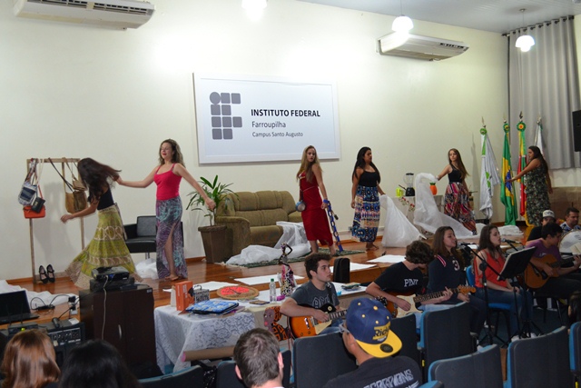 Na oportunidade, alunos dos cursos de Licenciatura em Computação, Licenciatura em Ciências Biológicas, e Técnico em Agroindústria (Proeja), prestigiaram a apresentação da Banda IF Musical, que tocou, entre outras canções, “Triste, louca e má”, da Banda brasileira “Francisco, El Hombre”, e “Anunciação”, do cantor e compositor Zé Ramalho; e um número de teatro musical, composto por várias alunas do Projeto de Ensino “A situação das mulheres na contemporaneidade: reflexões e análise entre docentes e discentes do IF Farroupilha”.