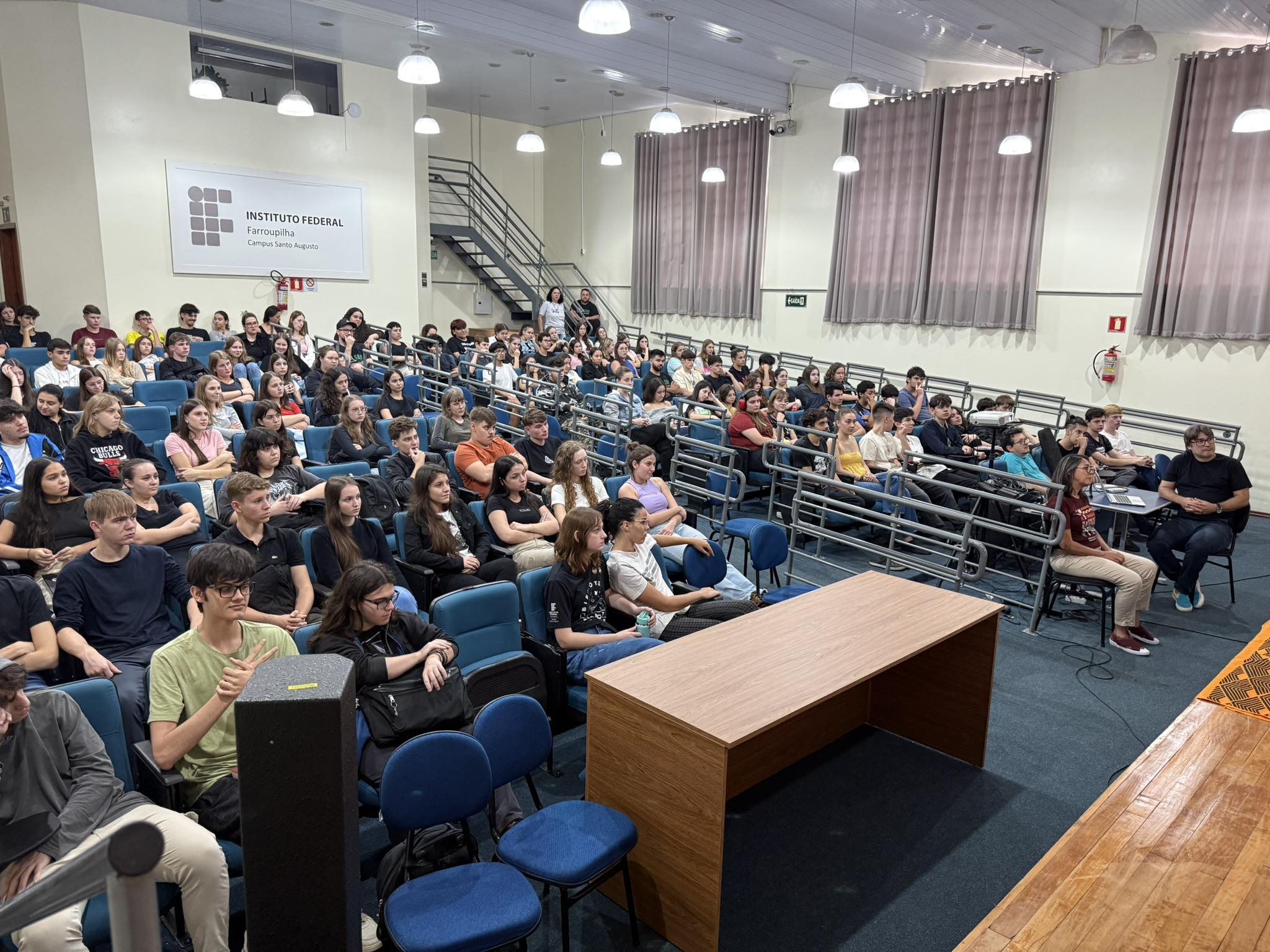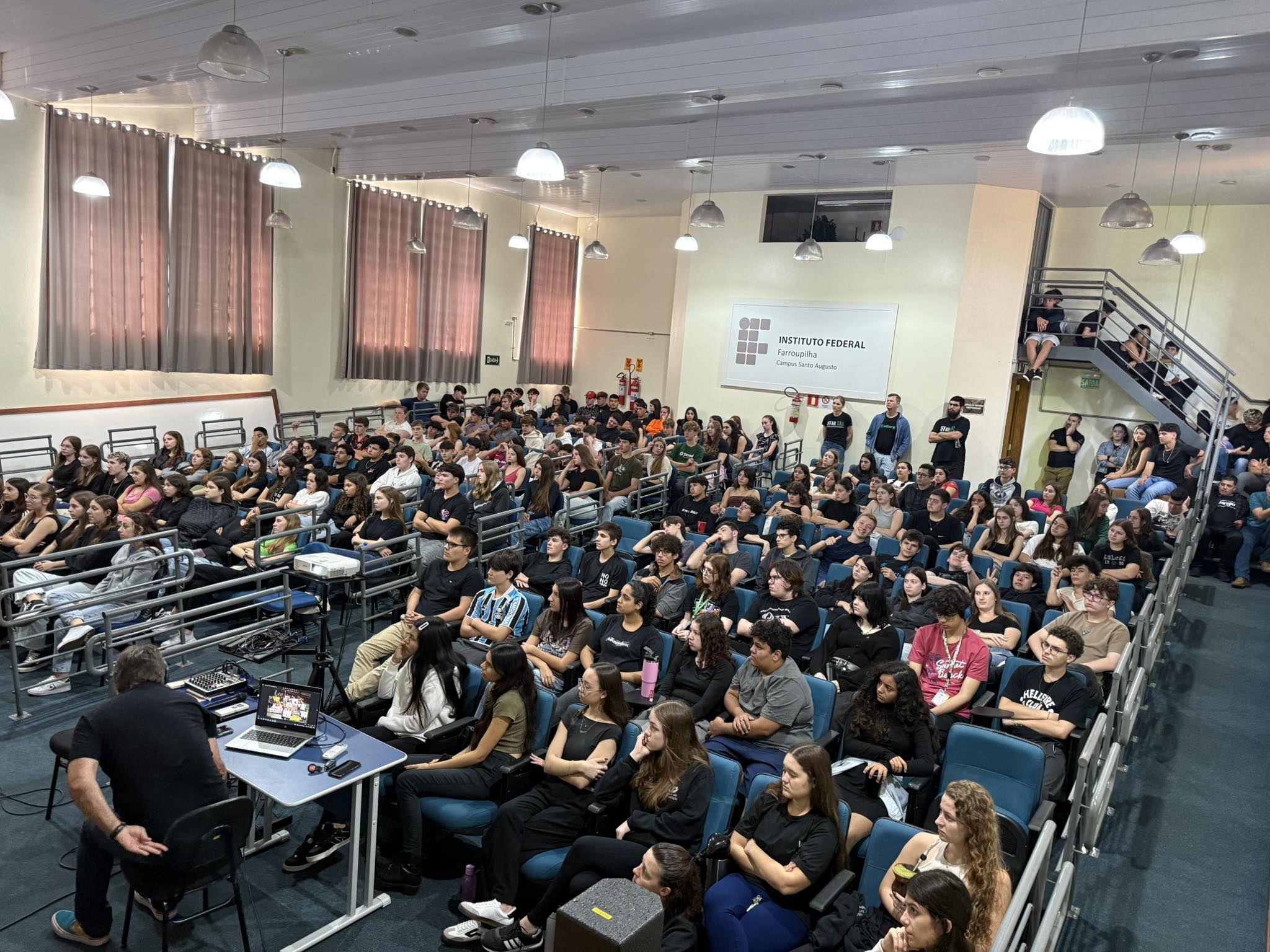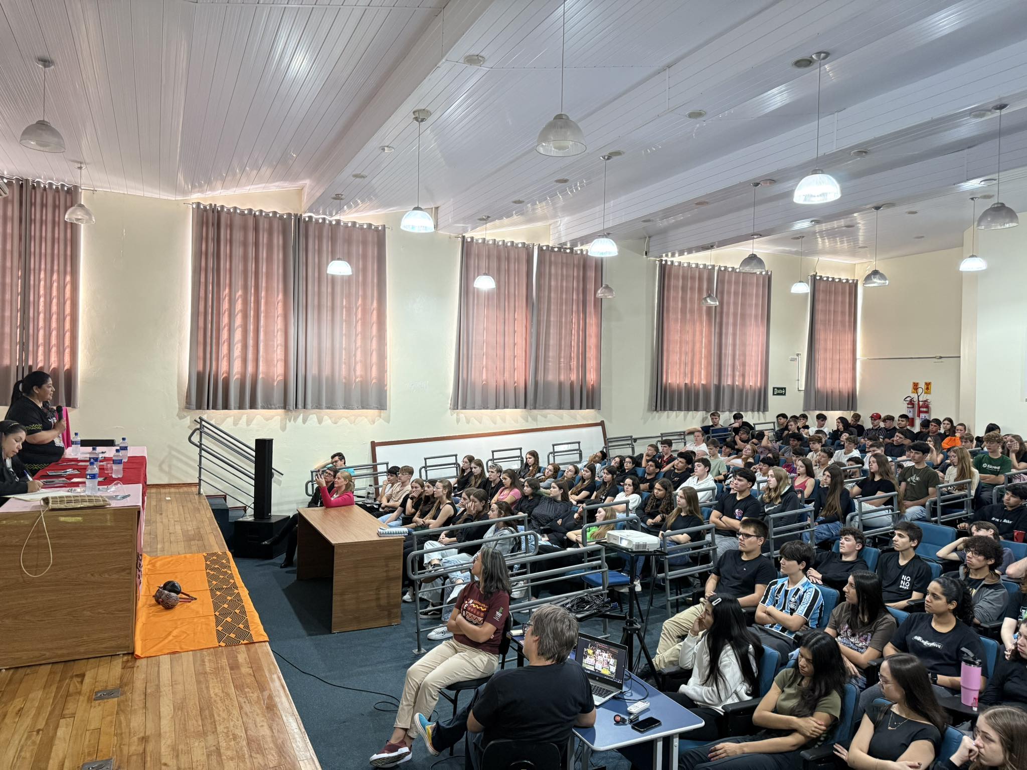 O Núcleo de Estudos Afro-brasileiros e Indígenas (Neabi) do IFFar – Campus Santo Augusto, promoveu nesta quinta-feira, 17 de abril, um evento alusivo ao Dia dos Povos Indígenas (19 de abril) e ao Dia da Terra (22 de abril), com o tema “Vozes Indígenas em defesa da cultura, do território e da vida”. As atividades, voltadas para os estudantes dos cursos técnicos integrados ao ensino médio, foram divididas em dois momentos, pela manhã, às 9h50, e à tarde, às 13h30.