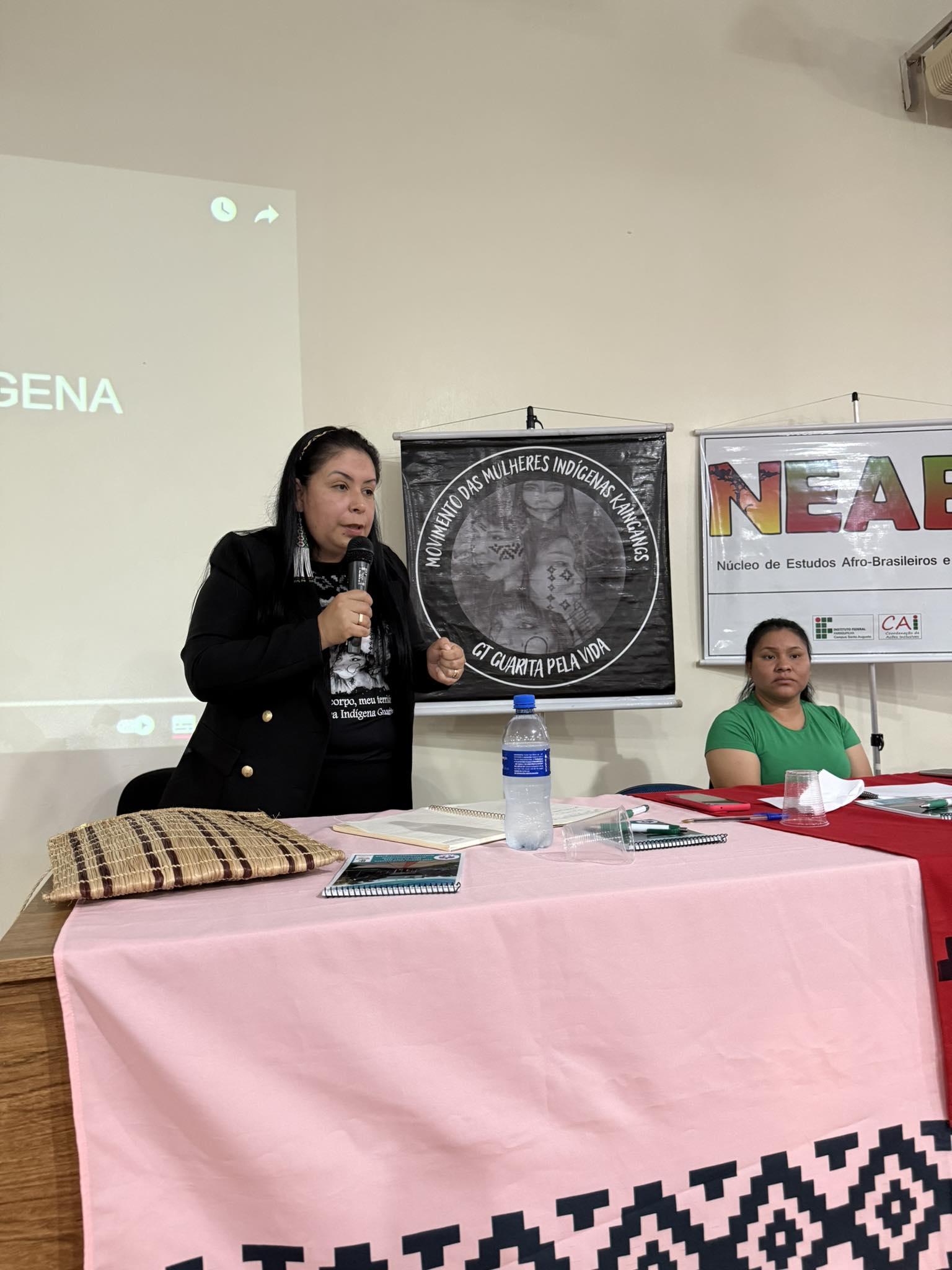 O evento contou com a participação das representantes do GT Guarita Pela Vida, professoras Beatriz Emílio e Regina Emílio e da Intérprete da Língua Kaingang, Roselaine Amaral, também da Diretora Geral do IFFar – Campus Santo Augusto, Márcia Fink, do Coordenador do Neabi, Ricardo Correa, a Diretora de Planejamento e Desenvolvimento Institucional, Janice Pinheiro Boeira, o Coordenador das Ações Afirmativas, Edevandro Sabino da Silva, e a participação especial de Cleonice Back, Assessora Parlamentar e suplente do Senador Paulo Paim do PT/RS.