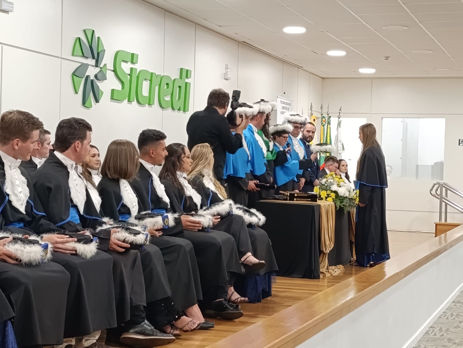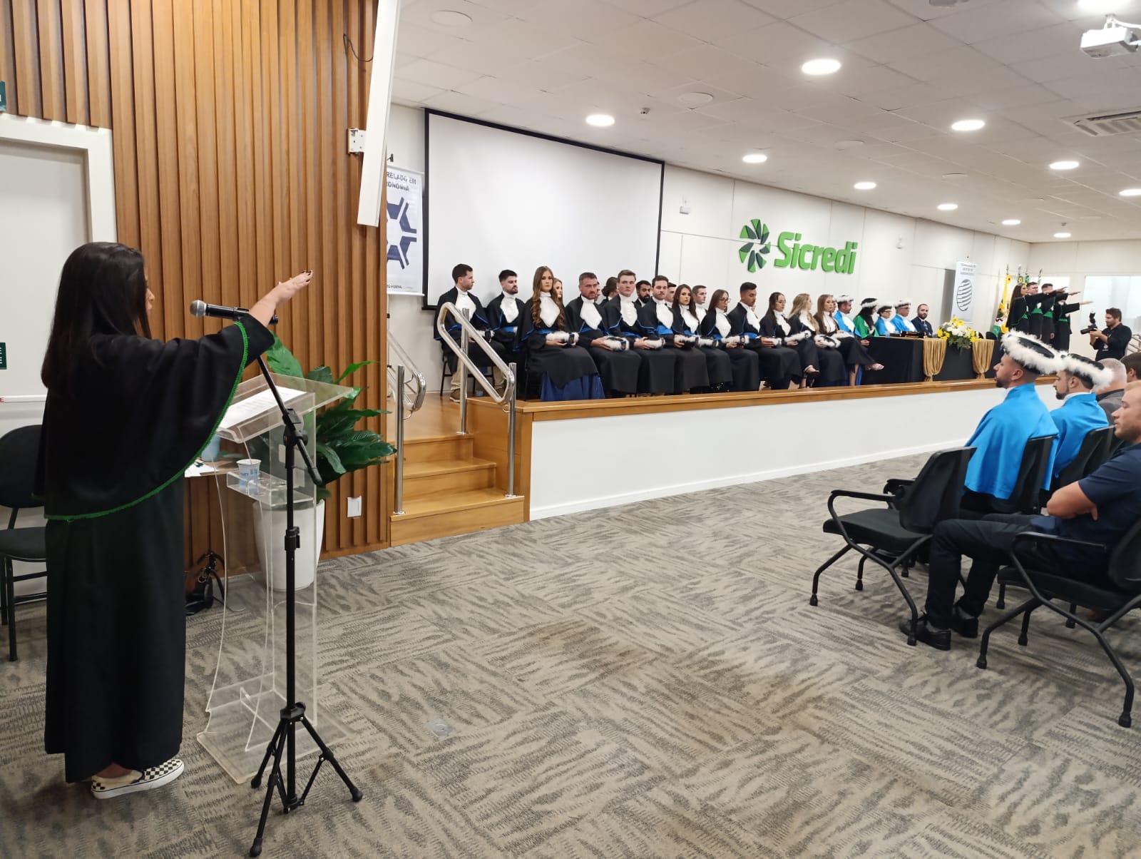 A Diretora Márcia em seu discurso agradeceu ao Sicredi pela cedência do espaço e destacou que a formatura é um marco significativo não apenas na trajetória dos graduandos, mas também para toda a instituição, que se dedica a formar profissionais qualificados e comprometidos com o desenvolvimento do agronegócio e a sustentabilidade, sempre em busca de melhorar a sociedade em que estão inseridos. “A educação é um pilar fundamental para o progresso da sociedade, e é uma honra para nós termos contribuído para a formação de indivíduos que sem dúvida, farão a diferença em suas áreas de atuação”.