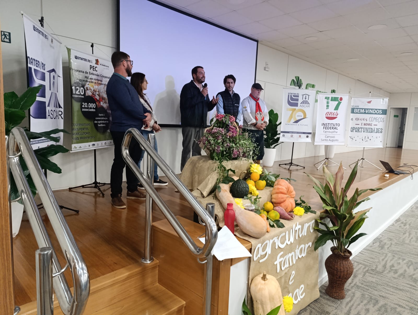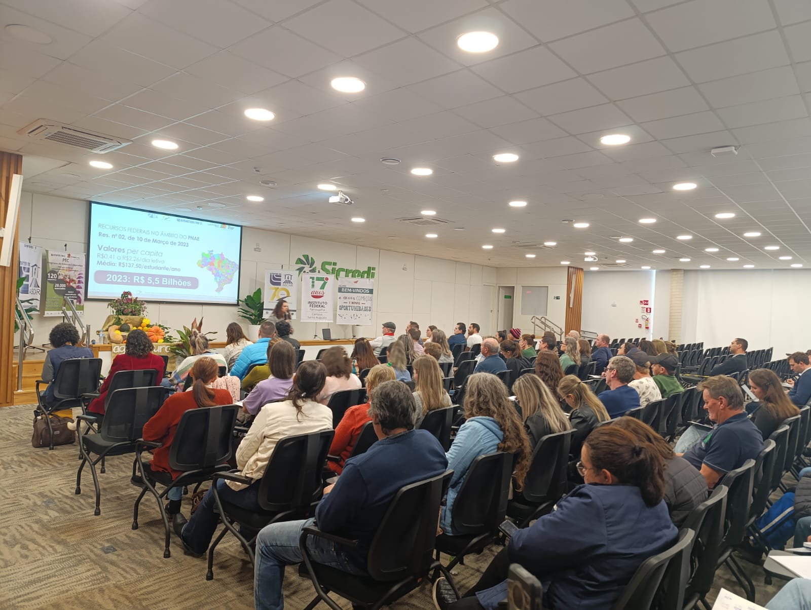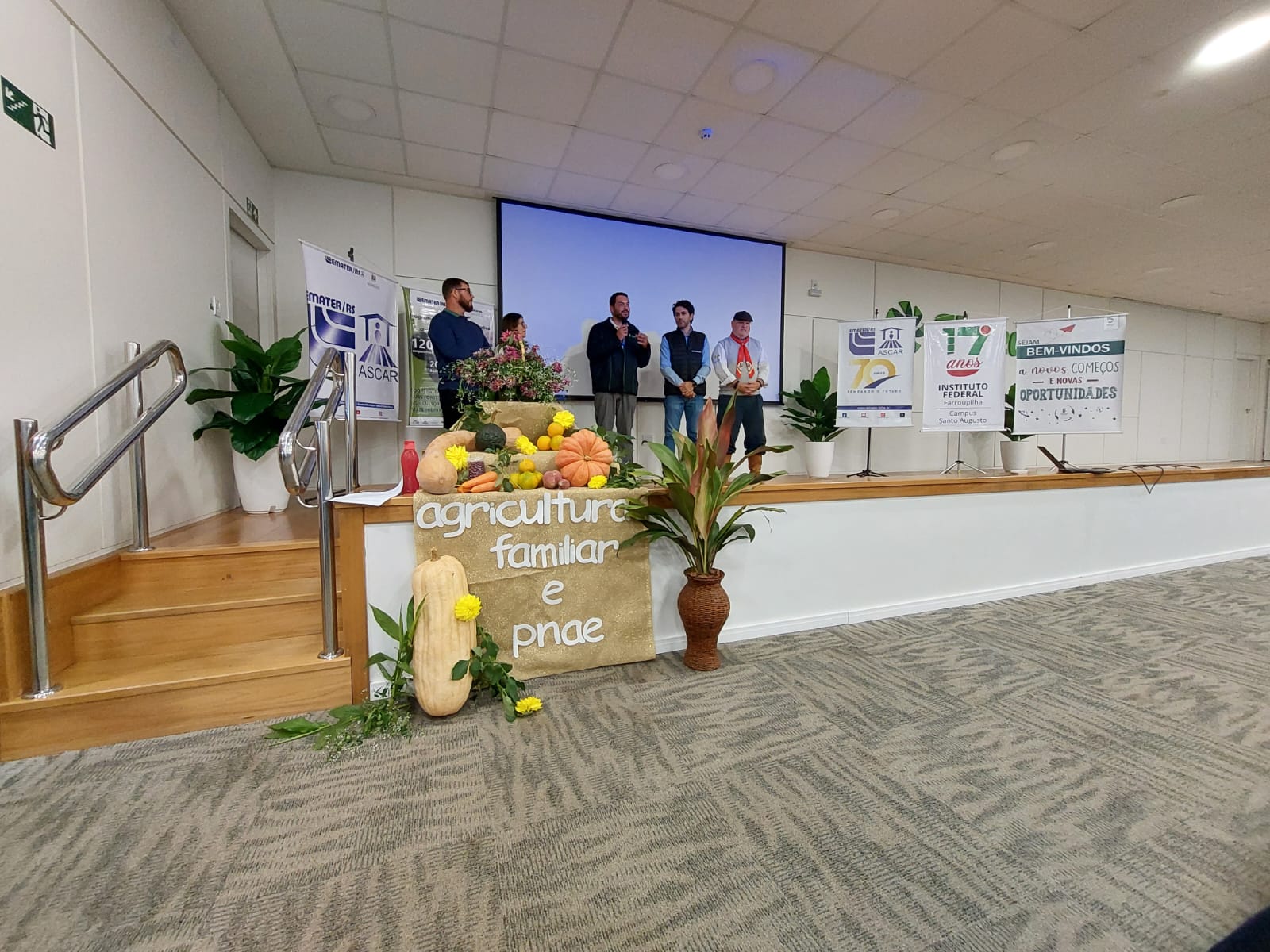 A EMATER/RS-Ascar, em parceria com o IFFar – Campus Santo Augusto e o Ministério do Desenvolvimento Agrário e Agricultura Familiar (MDA), promoveu na tarde de quarta-feira, 04 de junho, um importante Seminário Regional sobre o Programa Nacional de Alimentação Escolar (PNAE) e sua conexão com a Agricultura Familiar. O encontro reuniu agricultores, gestores públicos, estudantes e entidades da região para debater a construção de uma nova matriz produtiva de alimentos, mais sustentável, saudável e inclusiva.