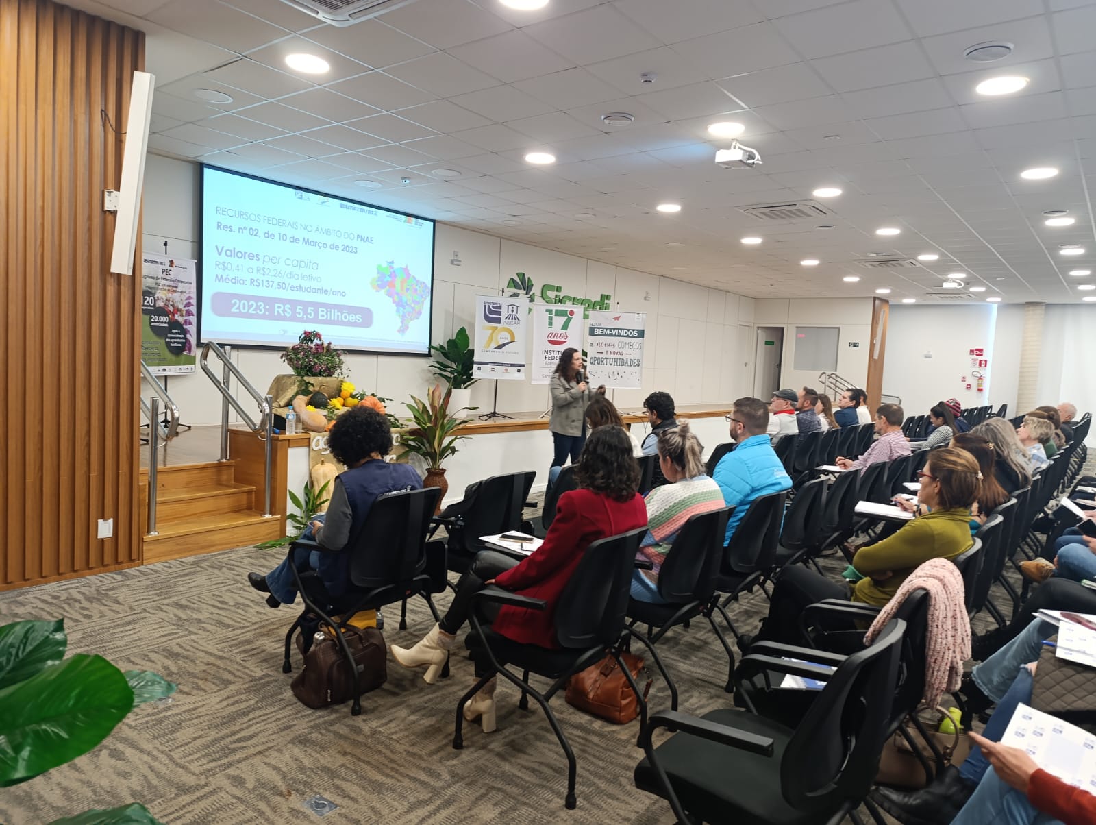 Após as falas de abertura, foram realizadas as palestras do Seminário, iniciando com a Extensionista Rural da Emater/RS-Ascar e Coordenadora Estadual do Programa de Extensão Cooperativa PEC, a nutricionista Ma.Patricia Fogaça Fernandes, que abordou em sua fala sobre “Legislação e diretrizes do PNAE no contexto da agricultura familiar”. Na sequência, o presidente da Unicentral - Central de Cooperativas da Agricultura Familiar e presidente da Redecoop - Rede estadual de Cooperativas da Agricultura Familiar, o engenheiro agrônomo, Alcione Piasentin Claro, abordou o tema “Comercialização e logísticas do PNAE”.