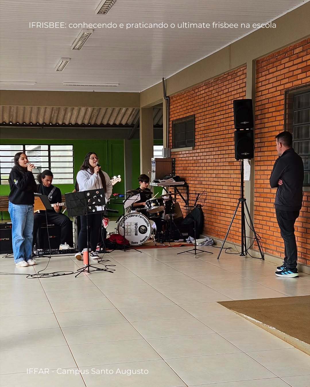 Na ocasião, os visitantes puderam vivenciar o ultimate frisbee em um formato diferente, com a organização de um torneio com 6 equipes mistas, realizando uma integração dos estudantes do IFRS com os alunos do 3º ano do curso técnico em Administração do IFFar – Campus Santo Augusto. A programação incluiu ainda uma apresentação da Banda IF Musical e visita à estrutura do curso de Informática e ao LabMaker.