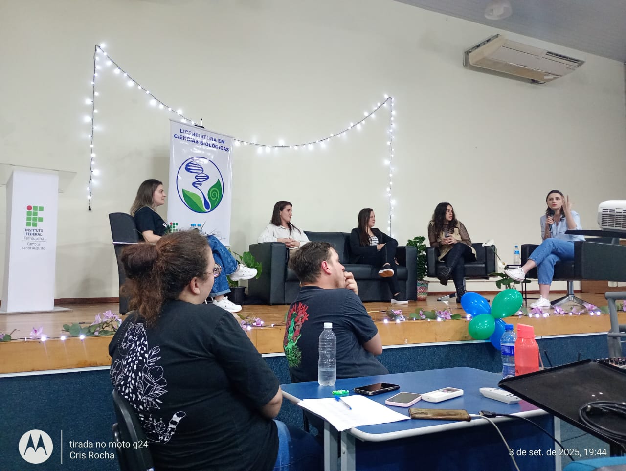 O evento teve início no dia 03, às 19h, no auditório da instituição, com a Mesa Dialógica com o tema “Licenciatura em Ciências Biológicas: desafios, possibilidades e caminhos na carreira”, com a participação da convidada Ataiz Colvero e as egressas Andressa Vargas, Diuly Vianna e Merceder Elwanger,