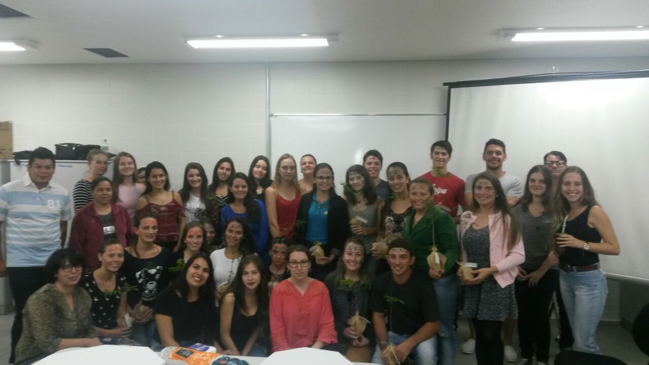 Após as palestras, os alunos do 3º semestre entregaram mudas de plantas nativas (guajuvira, cedro e angico) para os calouros. O encontro foi finalizando com um coquetel de confraternização.
